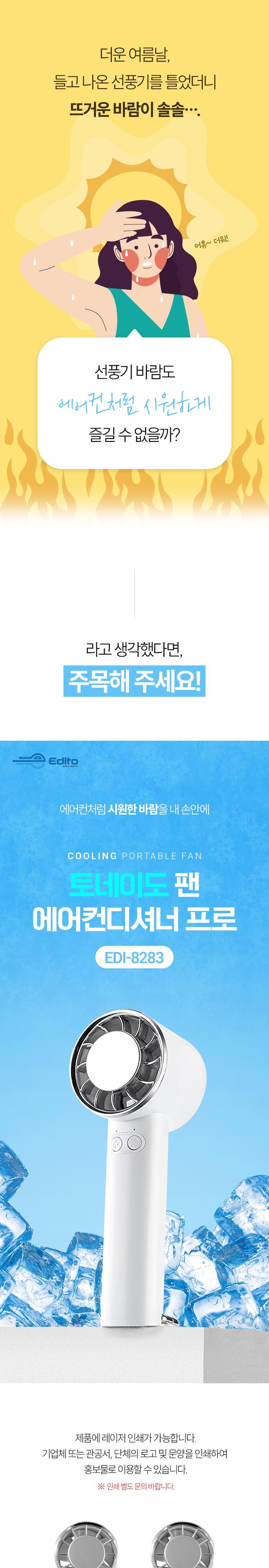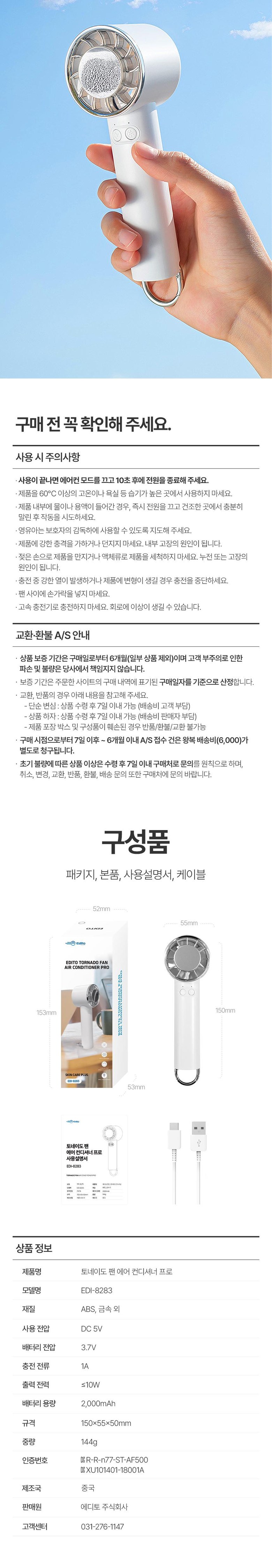 | 품명 및 모델명 | 에디토 토네이도 팬 에어컨디셔너 프로 손선풍기/ EDITO-8283 | KC 인증정보 | R-R-n77-ST-AF500/XU101401-18001A |