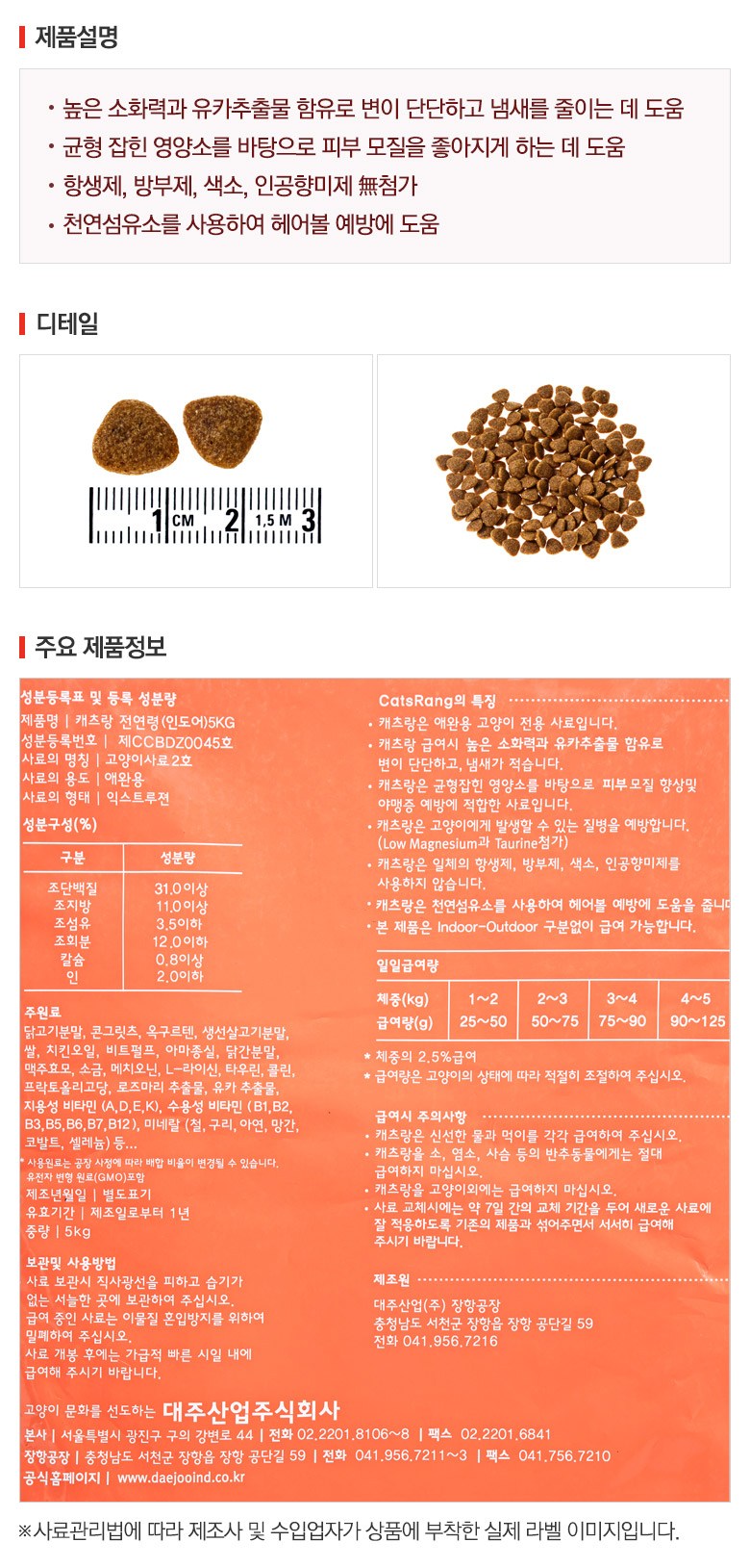 | 품명 및 모델명 | 캐츠랑 전연령(인도어겸용) 5Kg | 인증사항 | 해당없음 |