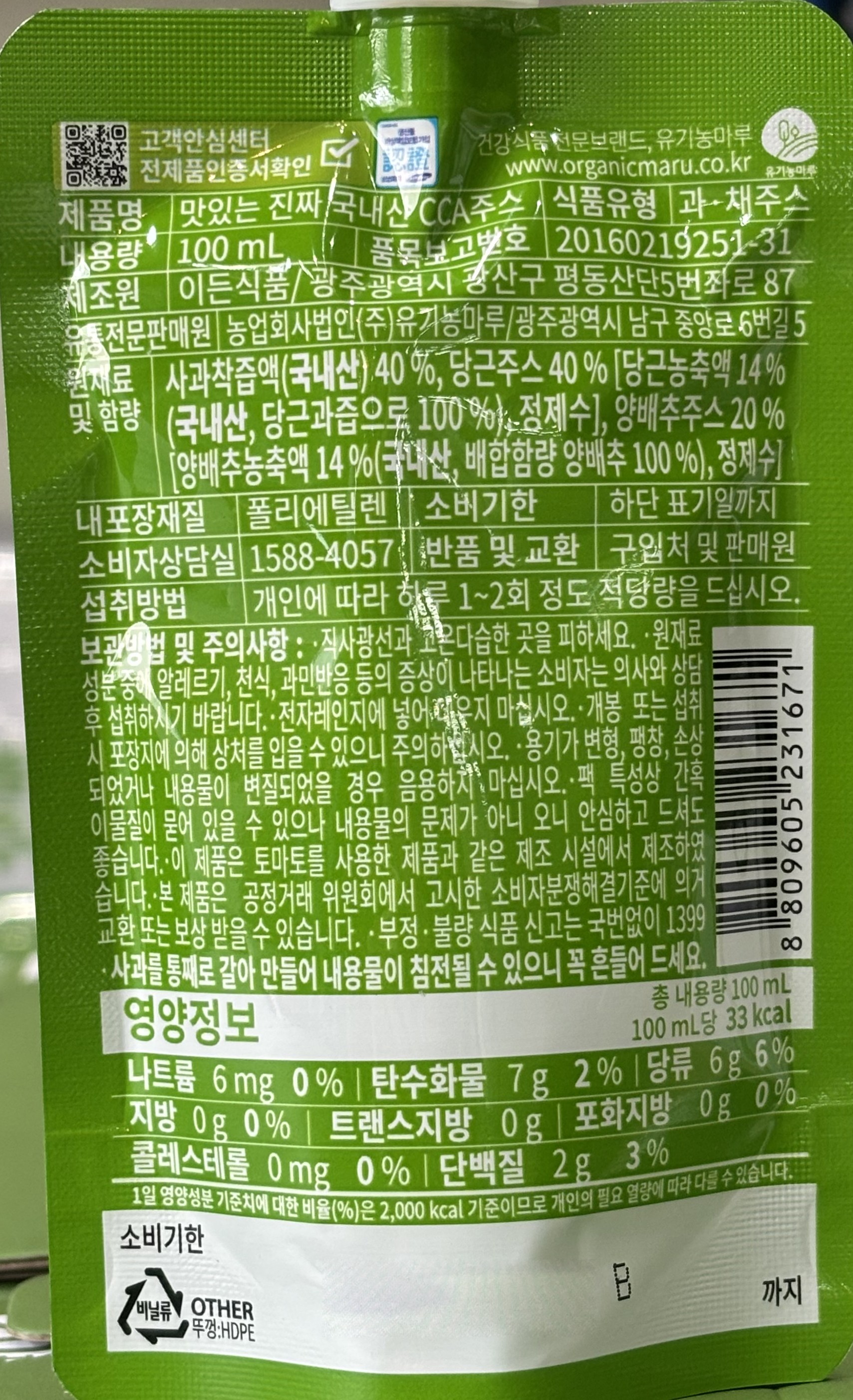 | 포장단위별 내용물의 용량(중량), 수량 | 100ml*40개 | 원재료명 및 함량 | 컨텐츠 참조 |