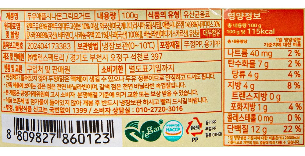 1. 제품에서 느껴지는 특유의 향은 원액두유의 발효향이며 제품의 이상이 아니니 안심하세요.