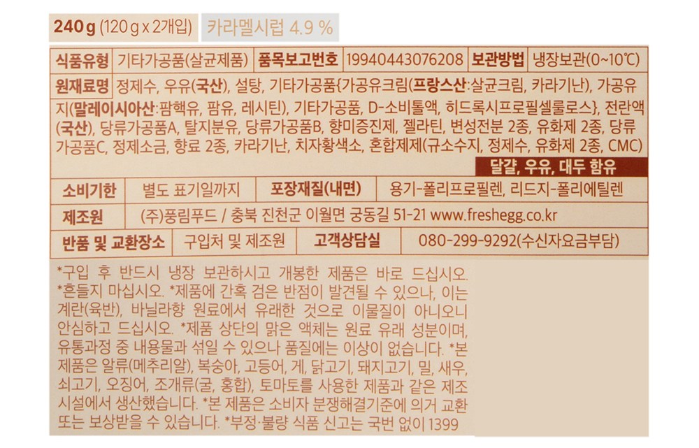 | 제품명 | 캐러멜 커스터드 푸딩 | 식품의 유형 | 컨텐츠 참조 |