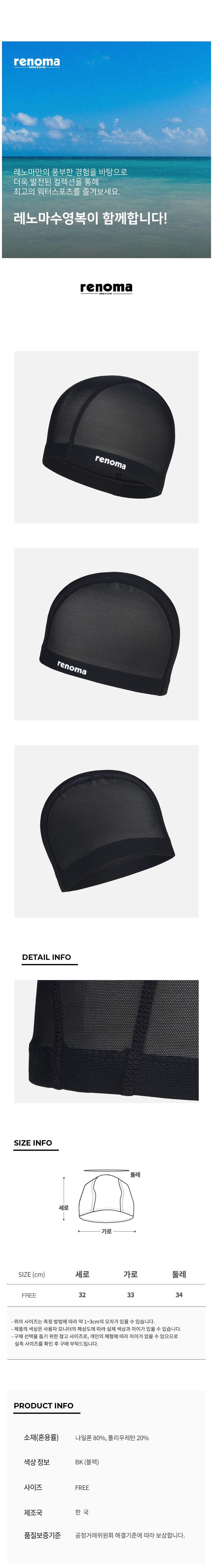 | 품명 및 모델명 | 레노마 성인용 메쉬 스판 수모 RO-RC2E301-BK | KC 인증정보 | 해당없음 |