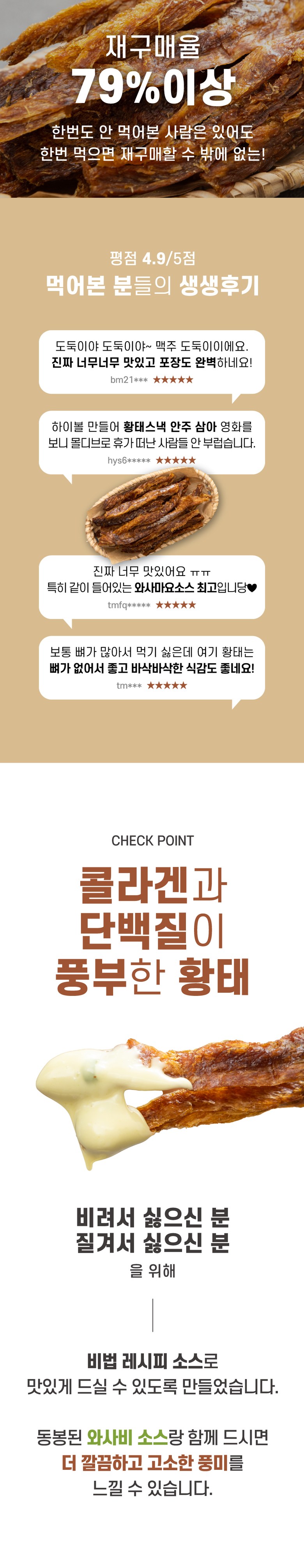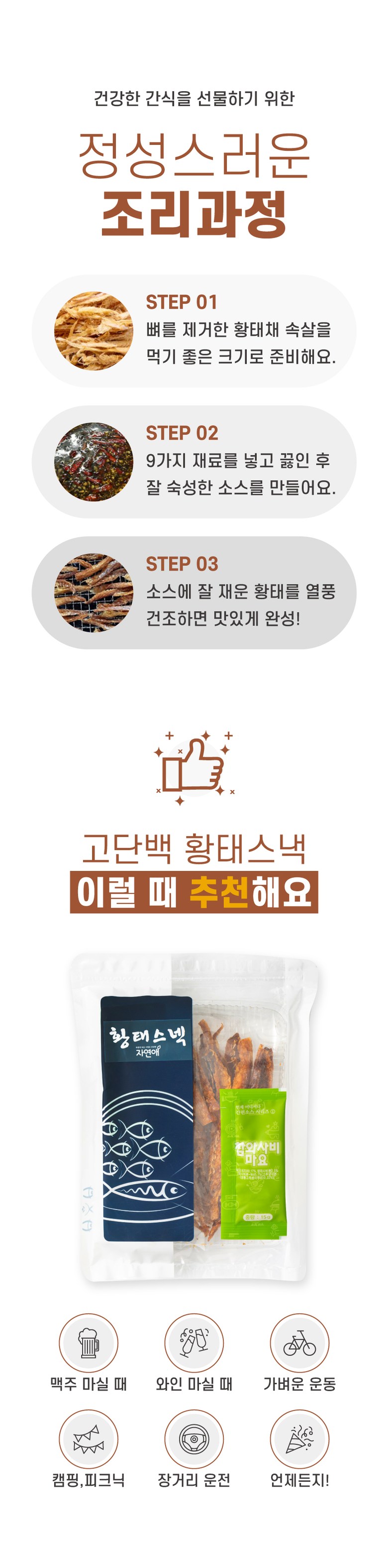 | 품목 또는 명칭 | 자연애 황태스낵 | 포장단위별 내용물의 용량(중량),수량,크기 | 70g |