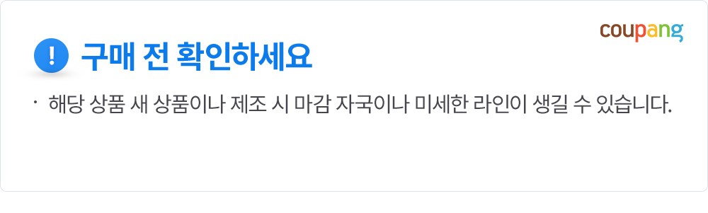 | 교환/반품 신청 기준일 | ㆍ단순변심에 의한 로켓배송 상품의 교환/반품은 제품 수령 후 30일 이내까지, 교환/반품 제한사항에 해당하지 않는 경우에만 가능 (교환/반품 비용 고객부담) ㆍ상품의 내용이 표시·광고의 내용과 다른 경우에는 상품을 수령한 날부터 3개월 이내, 그 사실을 안 날 또는 알 수 있었던 날부터 |