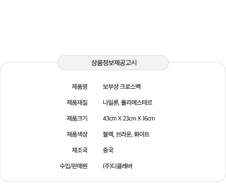 | 종류 | 보부상 크로스백 | 소재 | 나일론, 폴리에스테르 |