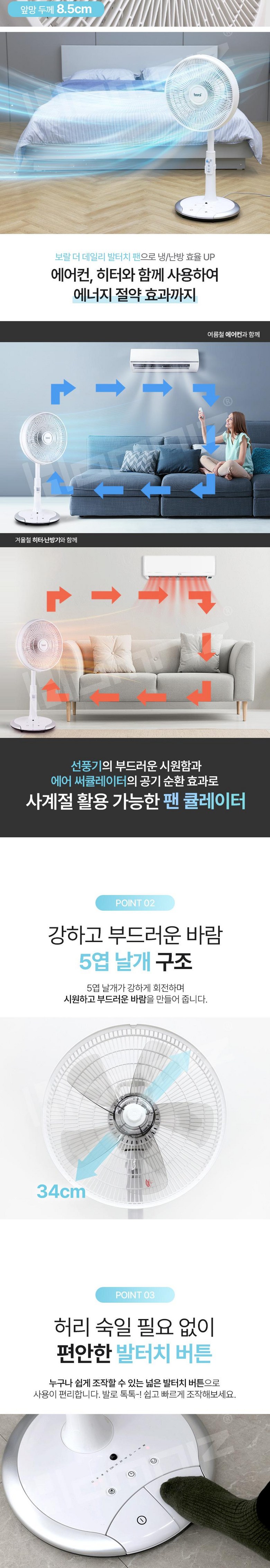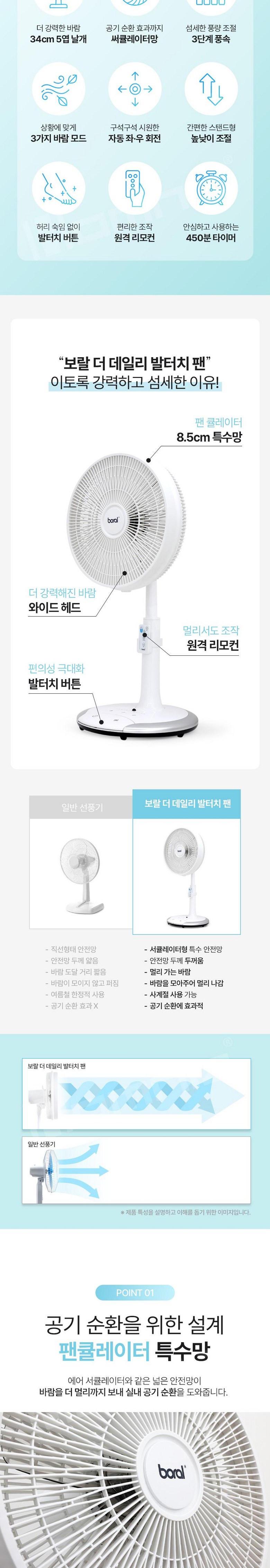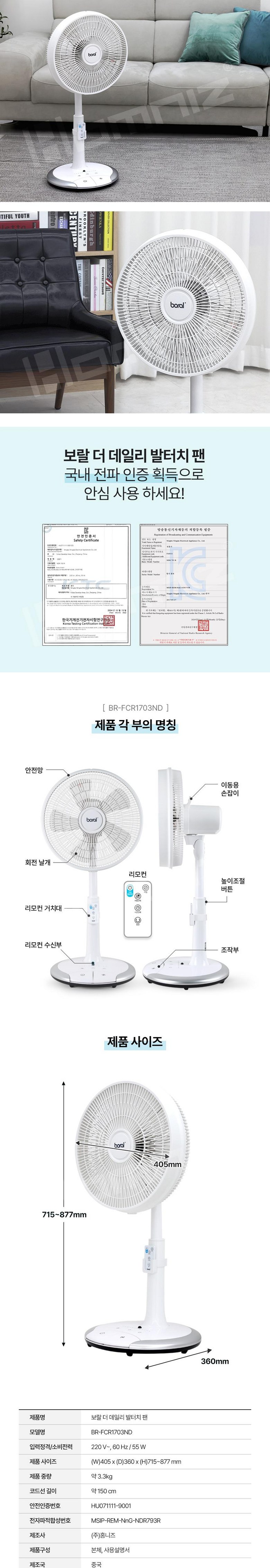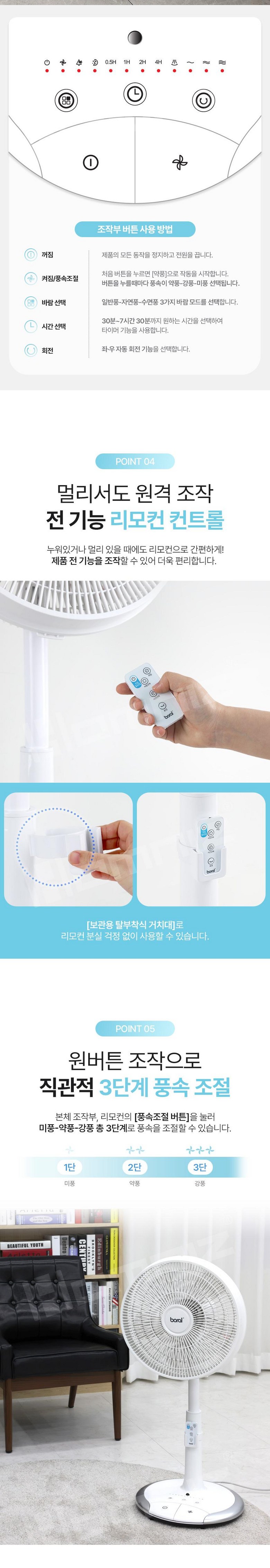 보랄 5엽 발터치 리모컨 스탠드 팬큘레이터 선풍기 BR-FCR1703ND