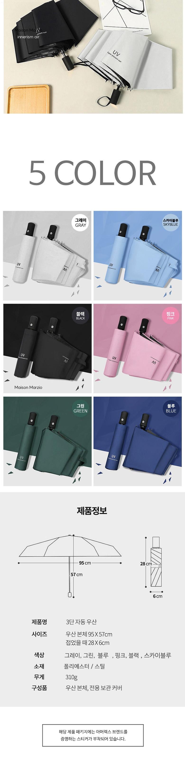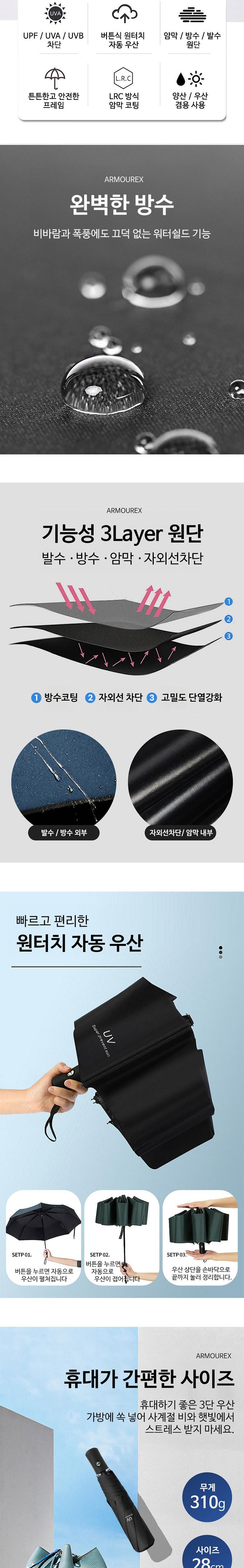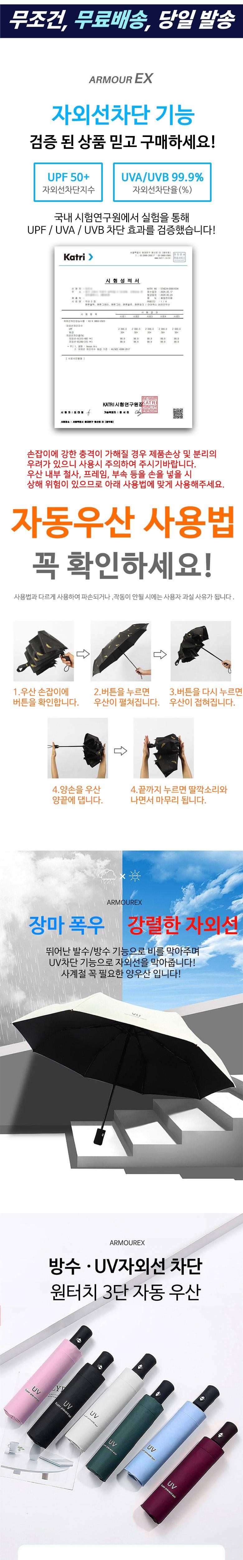 | 종류 | 자외선 차단 3단 자동 우산 양우산 | 소재 | 폴리에스터 스틸 |