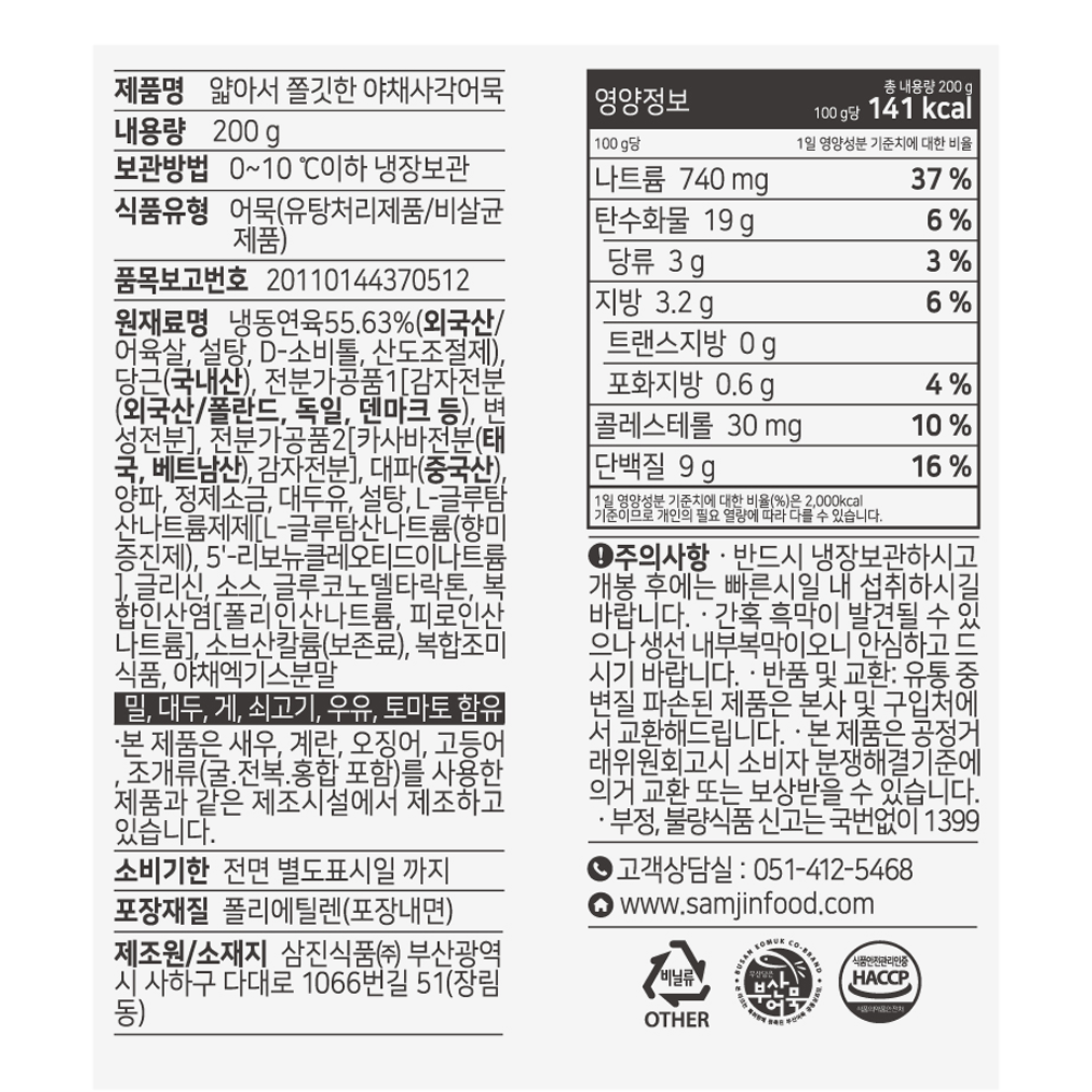 두께가 얇아 쫄깃쫄깃한 야채 사각어묵이에요. 당근, 대파, 양파를 잘게 다져 넣어 맛있게 즐길 수 있는데요. 고소한 감칠맛과 담백한 풍미가 매력적이죠. 얇게 썰어 볶아 드시거나, 꼬치에 구불구불하게 꽂아 어묵탕으로 요리해보세요.