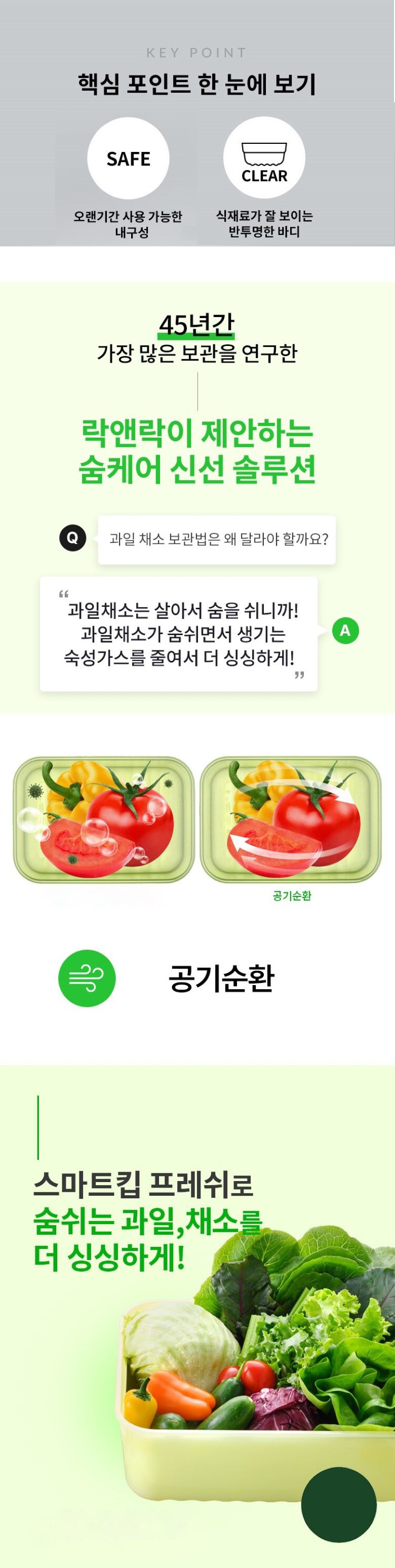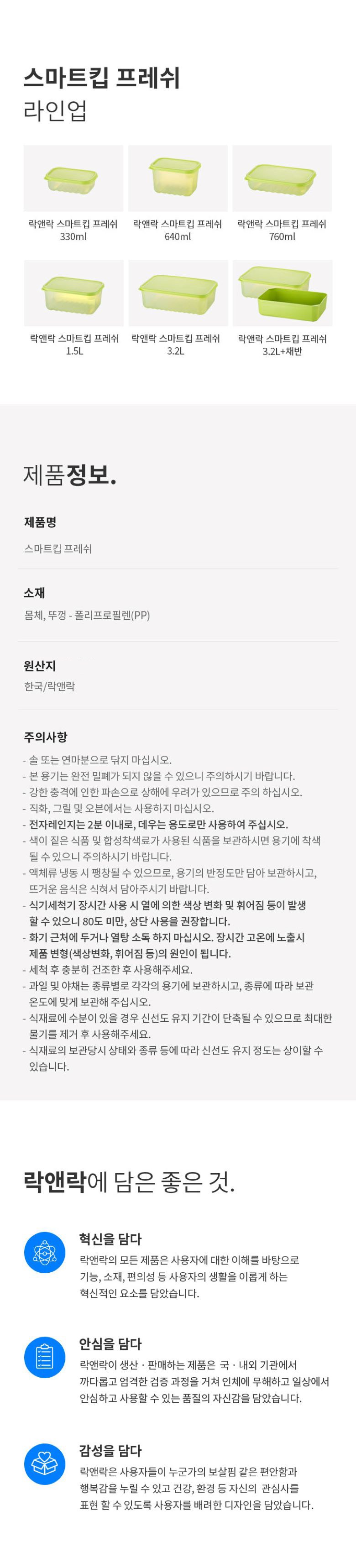 | 품명 및 모델명 | 락앤락 스마트 킵 프레쉬 밀페용기 640ml | 재질 | 컨텐츠 참조 |