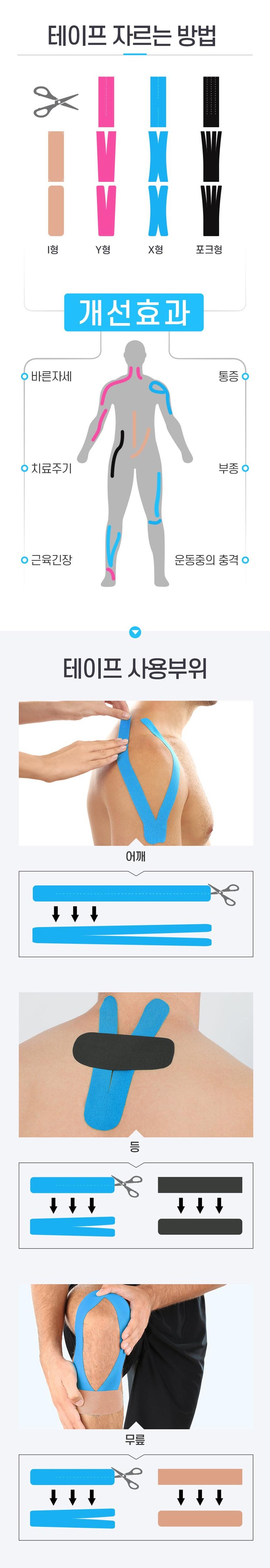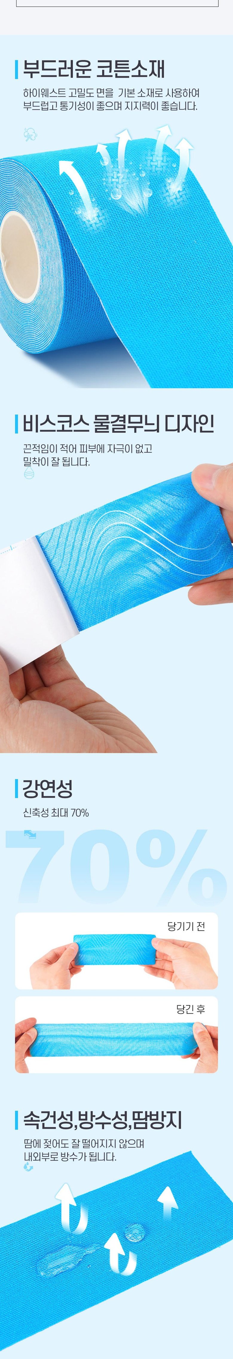 테이프 사용 시 양 끝은 늘어나지 않아야 하며, 중간 부분은 최대 40%까지 (정상 사용범위 20% 이하) 신축성있게 사용이 가능합니다.