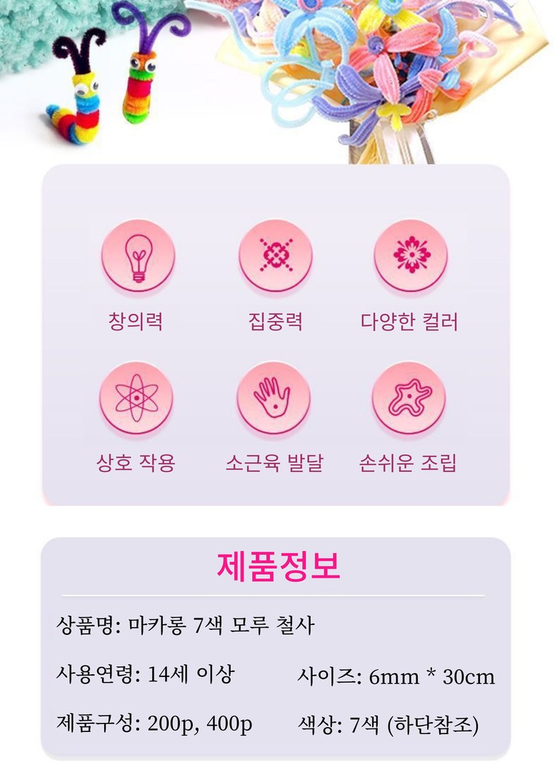 | 품명 및 모델명 | 마카롱 7색 모루 철사 | KC 인증정보 | 해당사항 없음 |
