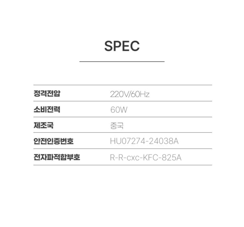 | 정격전압, 소비전력 | 상품 상세페이지 참조 | 에너지소비효율등급 | 상품 상세페이지 참조 |