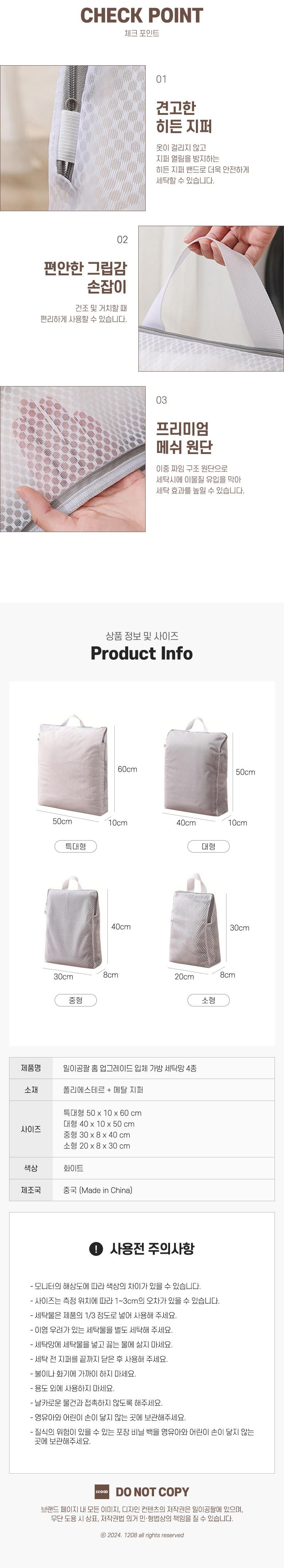 - 세탁망 형태: 사각형