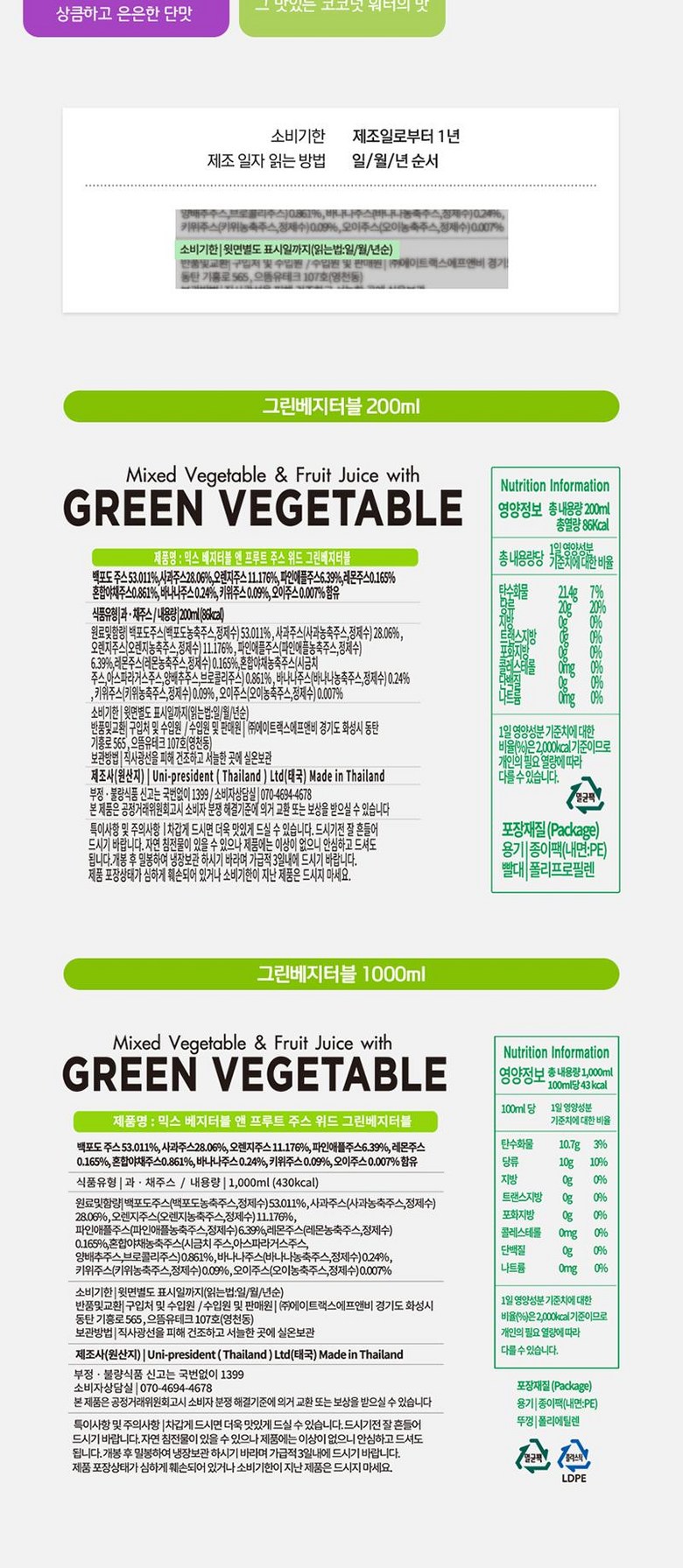 - 주스 종류: 혼합/야채