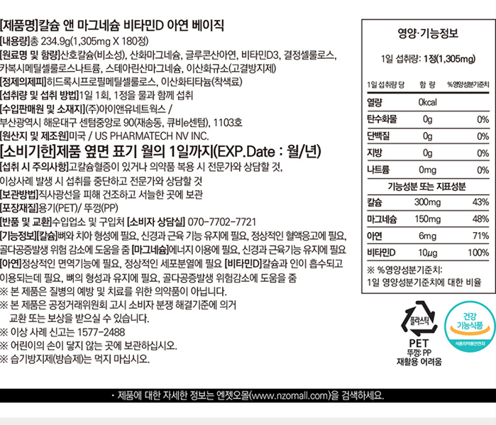 | 원료명 및 함량 | 컨텐츠 참조 | 영양정보 | 컨텐츠 참조 |