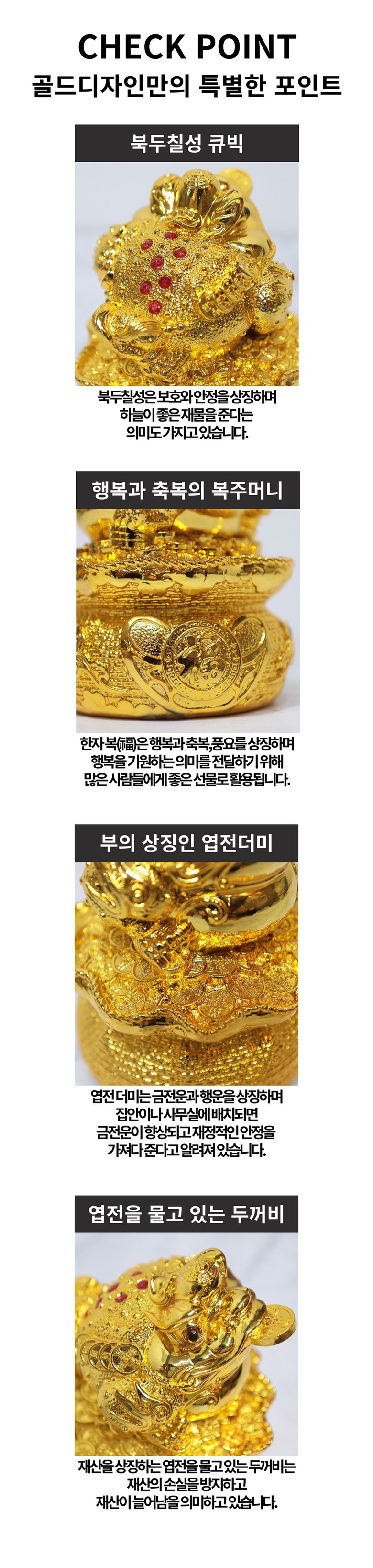 | 품명 및 모델명 | 골드디자인 재물과 행운의 황금엽전 삼족두꺼비 풍수 장식품 | 인증/허가 사항 | 해당없음 |