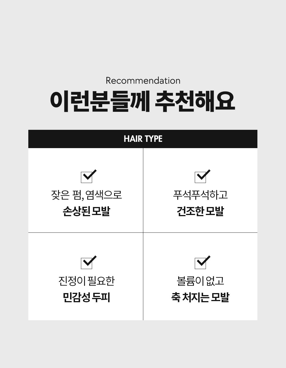 - 헤어케어 타입: 두피관리