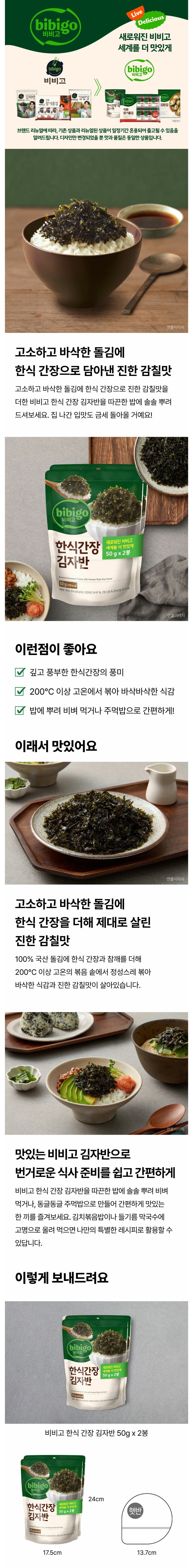 | 제품명 | 비비고 한식 간장 김자반 | 식품의 유형 | 컨텐츠 참조 |