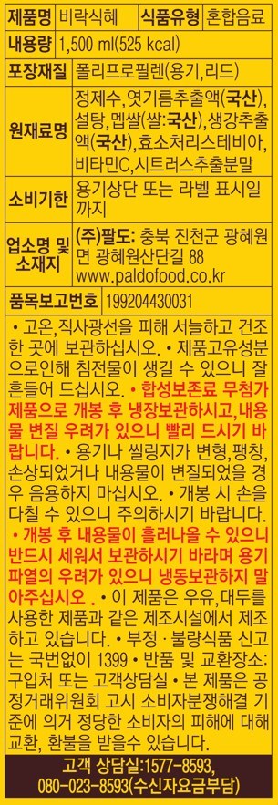 | 포장단위별 내용물의 용량(중량), 수량 | 1.5L x 4개 | 원재료명 및 함량 | 컨텐츠 참조 |