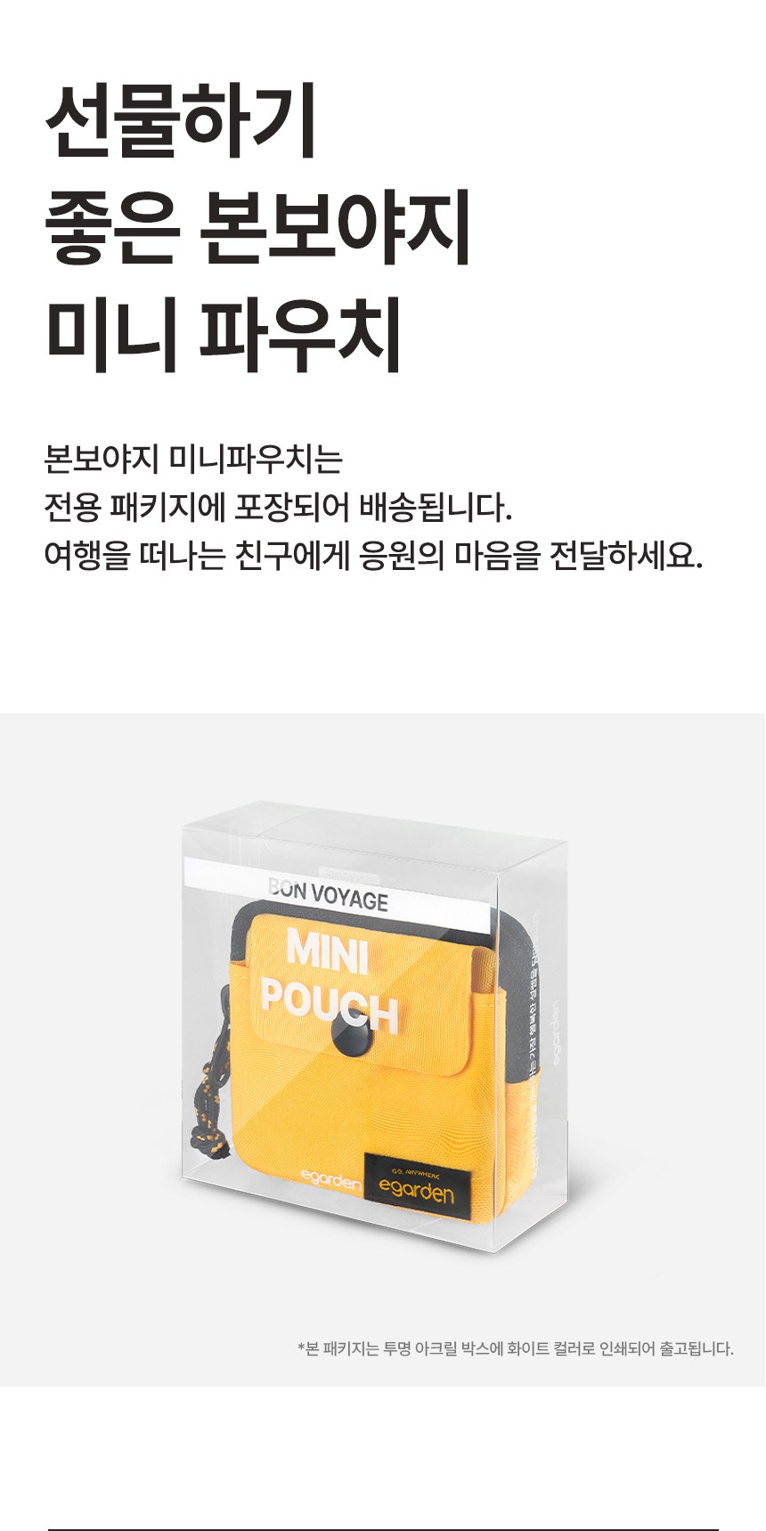 | 품명 및 모델명 | 에가든 본보야지 미니 파우치 | 인증/허가 사항 | 해당없음 |