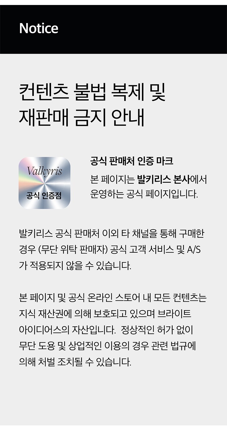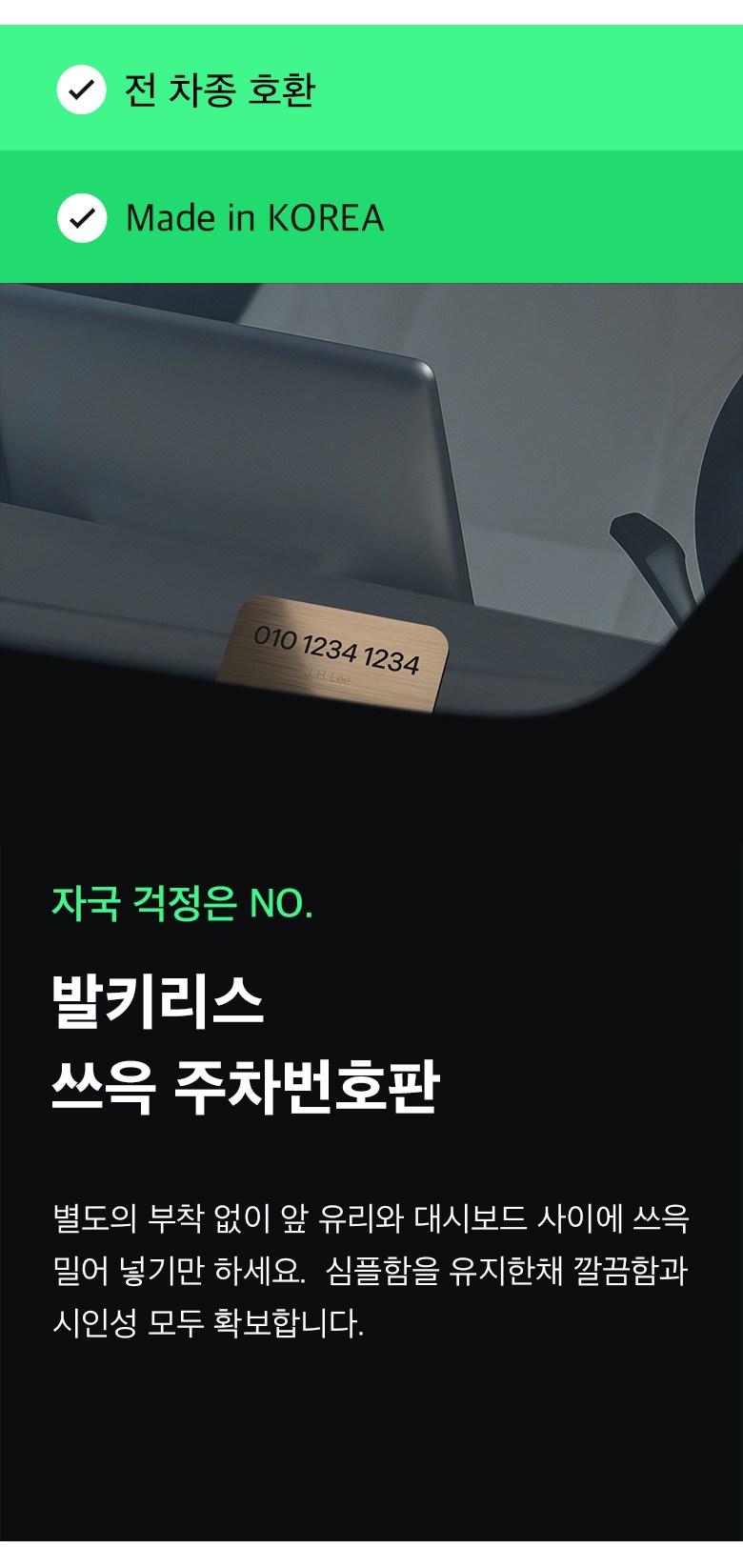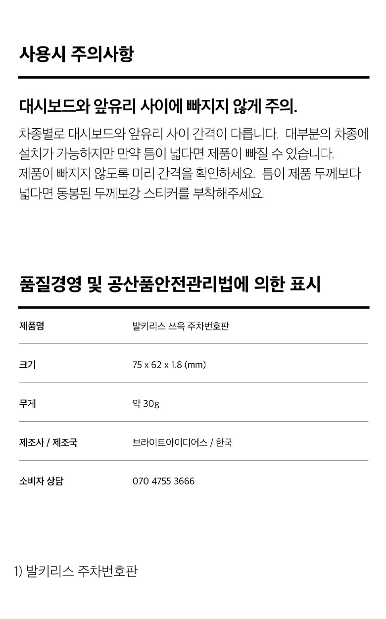 | 품명 및 모델명 | 발키리스 쓰윽 주차번호판 | 인증/허가 사항 | 해당없음 |