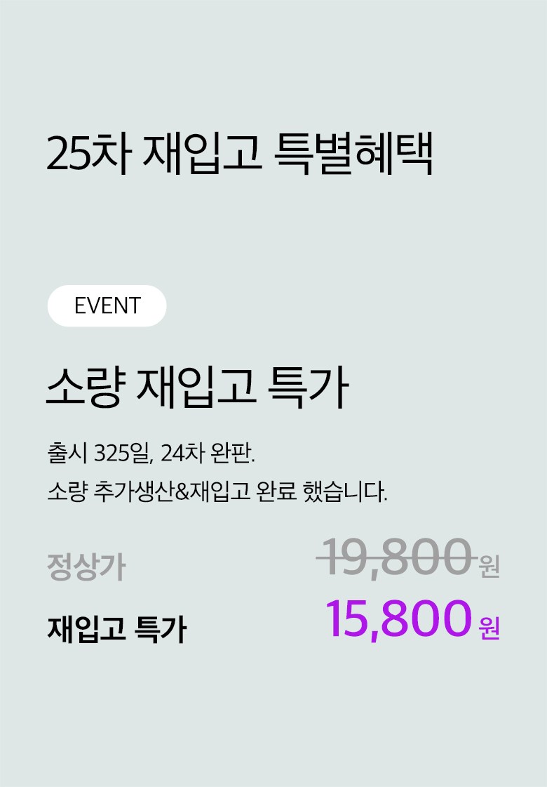 | 교환/반품 신청 기준일 | ㆍ단순변심에 의한 교환/반품은 제품 수령 후 7일 이내까지, 교환/반품 제한사항에 해당하지 않는 경우에만 가능 (배송비용과 교환/반품 비용 왕복배송비 고객부담) ㆍ상품의 내용이 표시·광고의 내용과 다른 경우에는 상품을 수령한 날부터 3개월 이내, 그 사실을 안 날 또는 알 수 있었던 날부터 |