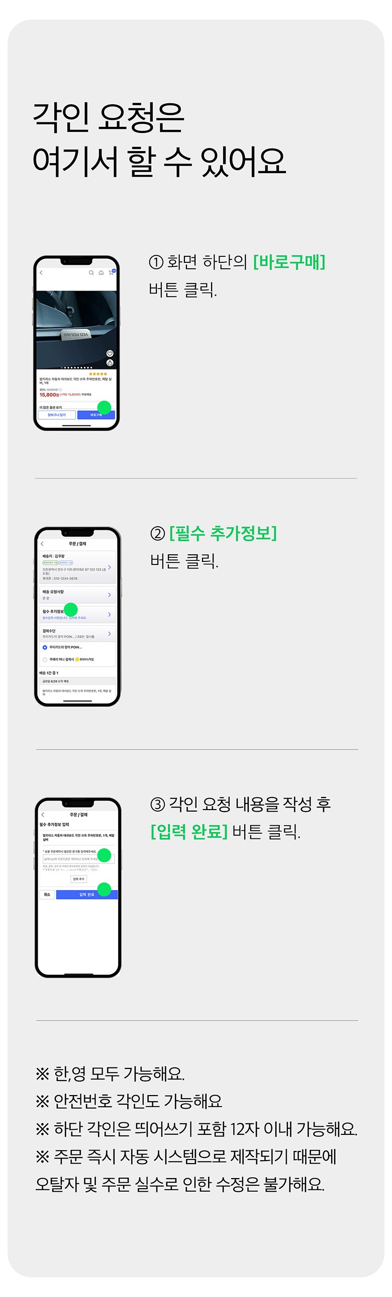 - ㆍ모니터 해상도의 차이로 인해 색상이나 이미지가 실제와 달라, 고객이 단순 변심으로 교환/반품을 무료로 요청하는 경우