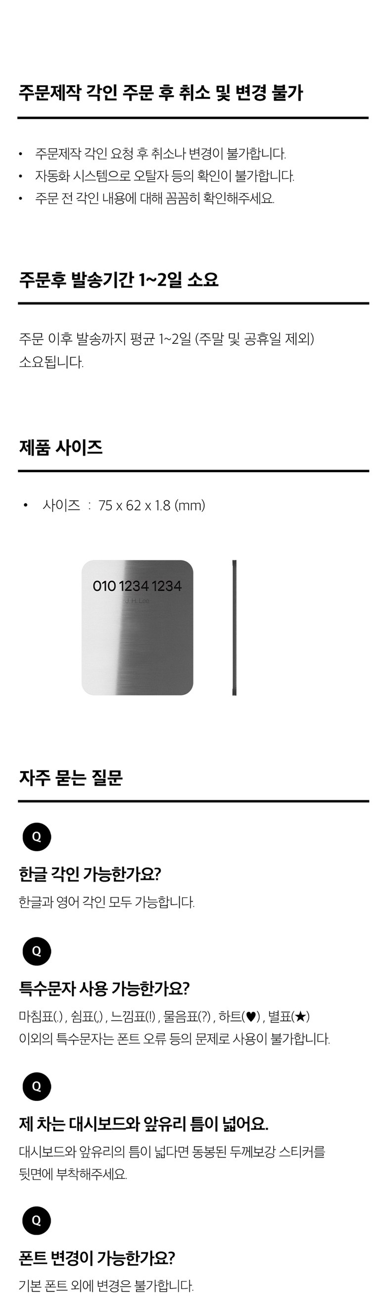 | 배송방법 | 주문제작 | 배송비 | 무료배송 · 도서산간 추가 배송비 - 제주 지역: 2,500원 - 도서산간 지역: 2,500원 |