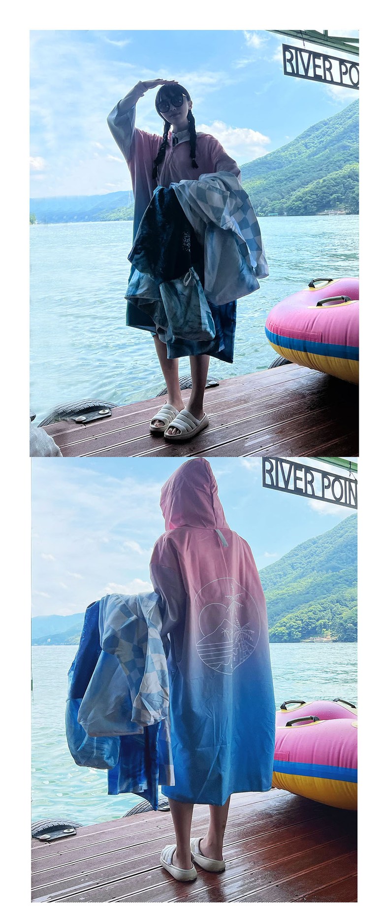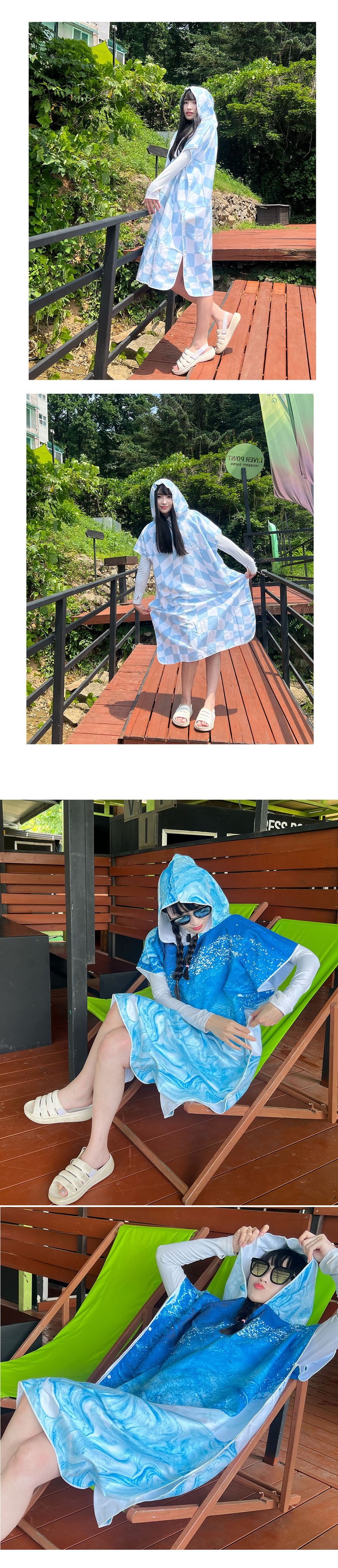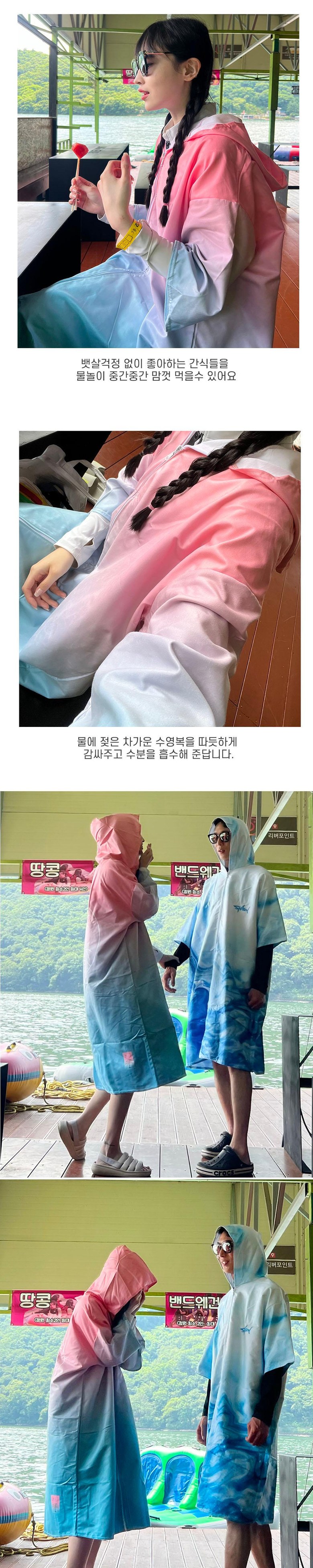 미코허그 퀵드라이 후드 비치타올 남녀공용 오버핏 서핑판초 극세사 후드가운 입는 타월, 퀵드라이집업핑크오션, 1개