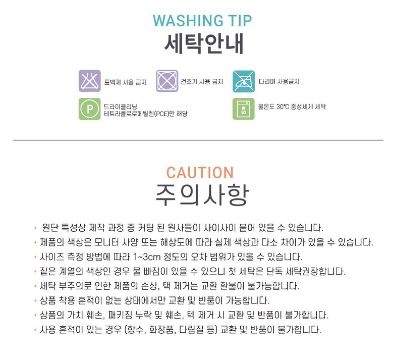 - ㆍ모니터 해상도의 차이로 인해 색상이나 이미지가 실제와 달라, 고객이 단순 변심으로 교환/반품을 무료로 요청하는 경우