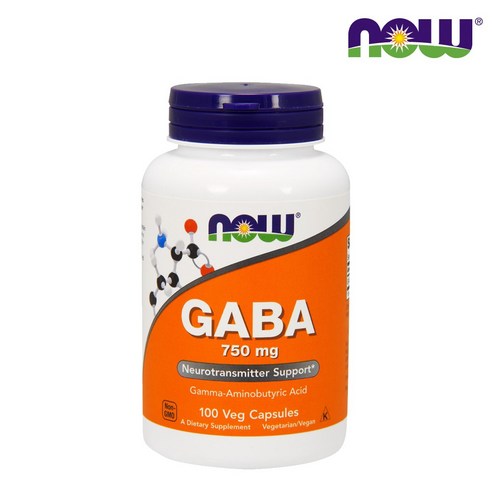 Now Foods 2개 가바 GABA 750 mg 아미노산 100 베지캡슐
