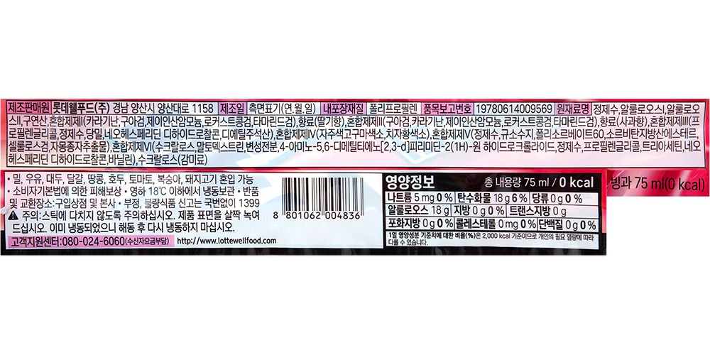 | 제품명 | 스크류바 0kcal | 식품의 유형 | 컨텐츠 참조 |