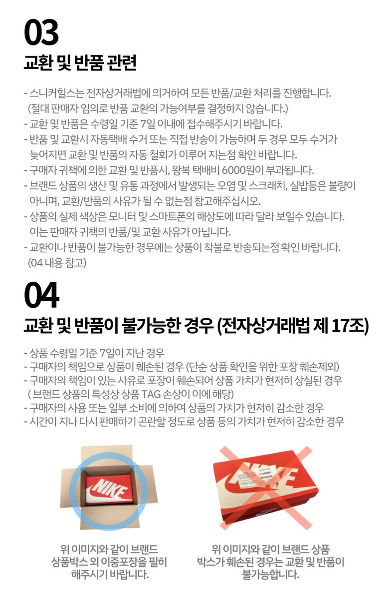 - ㆍ교환/반품에 관한 일반적인 사항은 판매자가 제시사항보다 관계법령이 우선합니다.