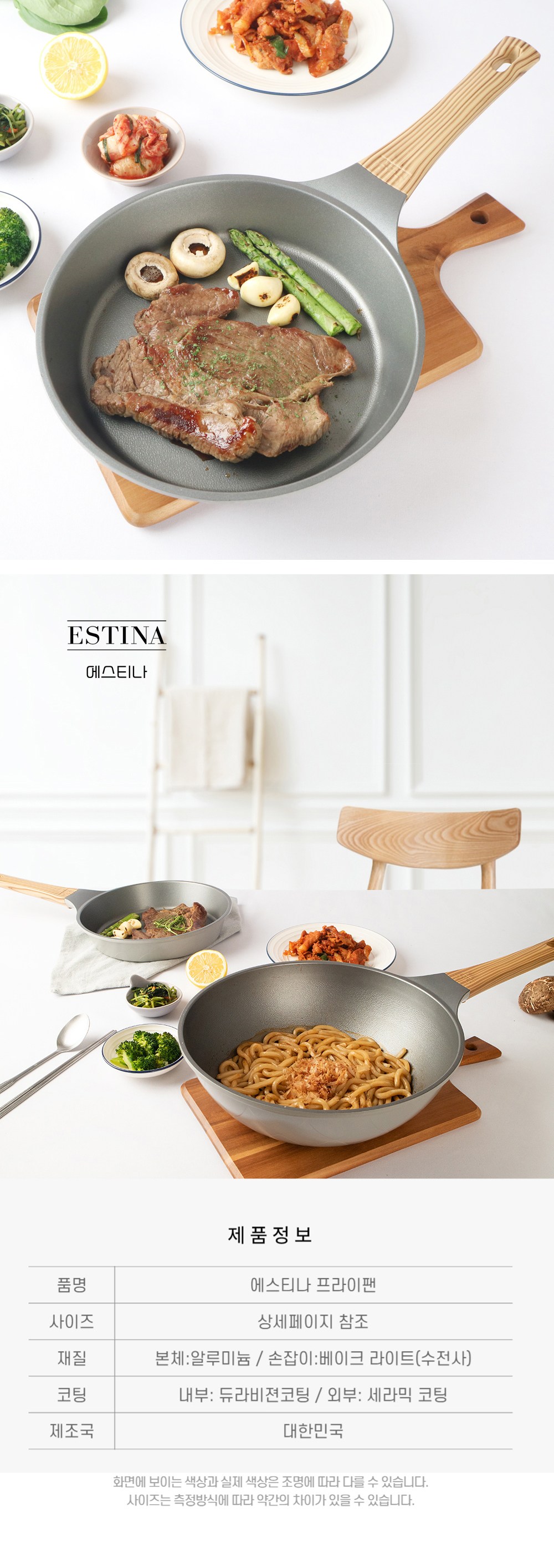 | 품명 및 모델명 | 에스티나 주물 IH 인덕션 코팅 궁중팬 | 재질 | 몸체 - 알루미늄, 손잡이 - 베이크라이트 |