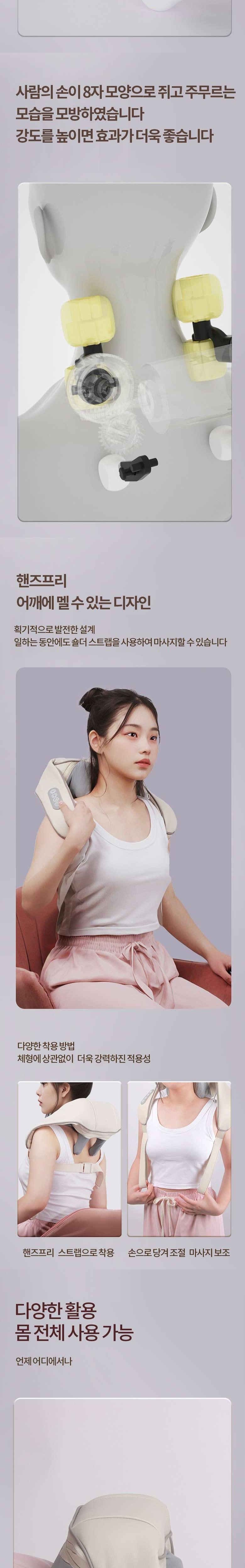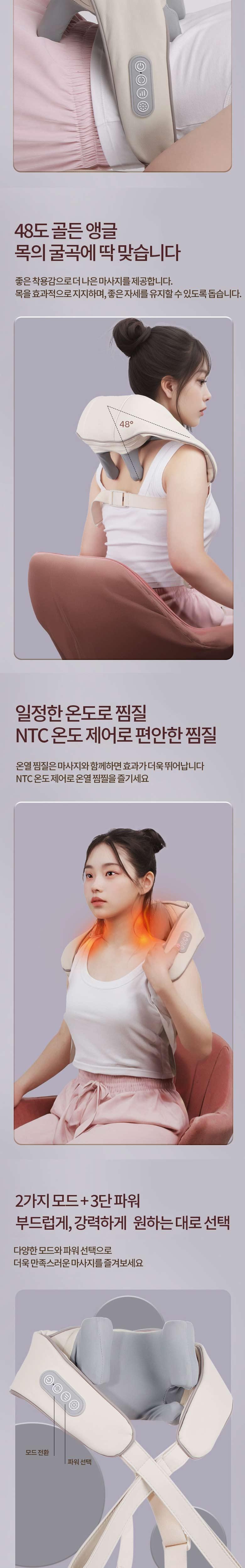 1. 위치 조정: 마사지기를 목에 놓고 마사지 헤드가 목의 전체 영역을 덮을 수 있도록 위치를 조정합니다. 2. 마사지 강도: 처음에는 약한 강도로 마사지하다가 점차 강도를 높이십시오. 불편함이나 통증을 느끼면 강도를 줄이거나 사용을 중단해야 합니다. 3. 시간: 각 마사지의 시간은 과도한 피로나 근육 손상을 피하기 위해 15~20분 이내로 조절되어야 합니다. 4. 빈도: 마사지는 일반적으로 하루 1~2회 사용해주십시오. 더 많은 마사지가 필요한 경우, 세션 사이에 몇 시간 정도 기다렸다가 사용하십시오. 5. 자세 : 마사지기를 사용할 때에는 앉거나 서 있는 상태를 유지하고, 현기증이나 몸이 균형을 잃는 것을 방지하기 위해 몸을 안정되게 유지하십시오.