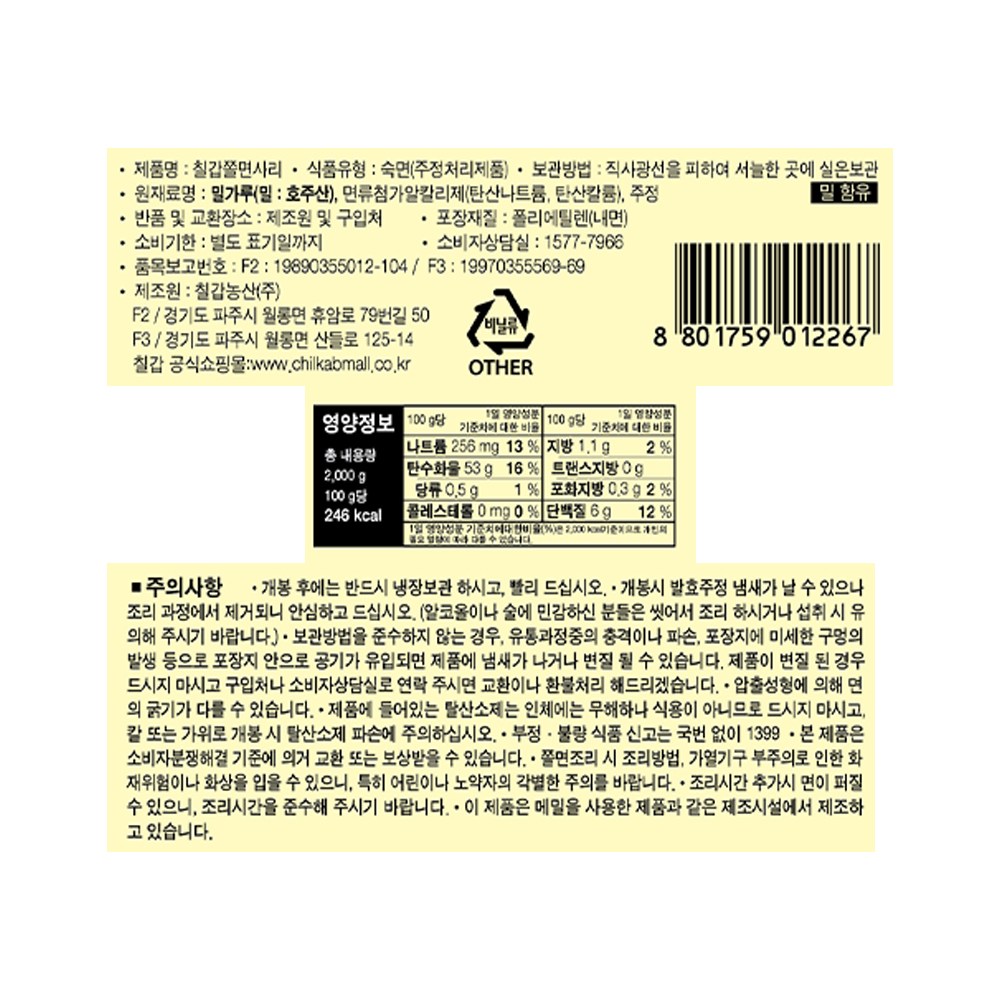 - 면 구성품: 면
