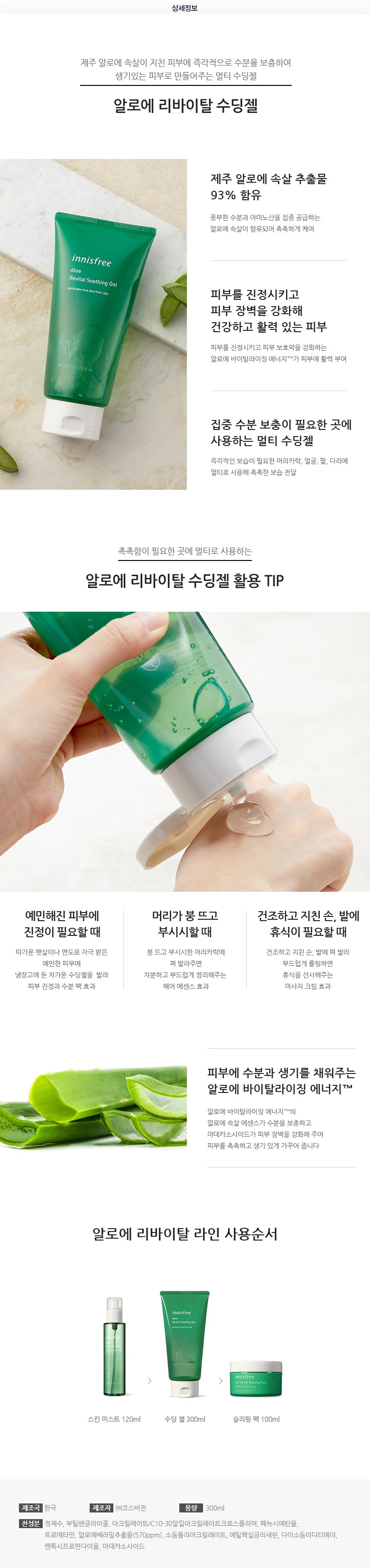 | 사용기한 또는 개봉 후 사용기간 | 본 상품은 해당 물류센터 직발송 상품인 관계로 제조연월일 및 사용기한 정보가 매번 변경되므로 상단 사용기한 정보를 참고해 주세요. | 사용방법 | 머리, 얼굴, 팔, 다리 등 건조하고 피부 진정이 필요한 곳에 적당량을 덜어 수시로 골고루 펴 발라 흡수시켜줍니다. |