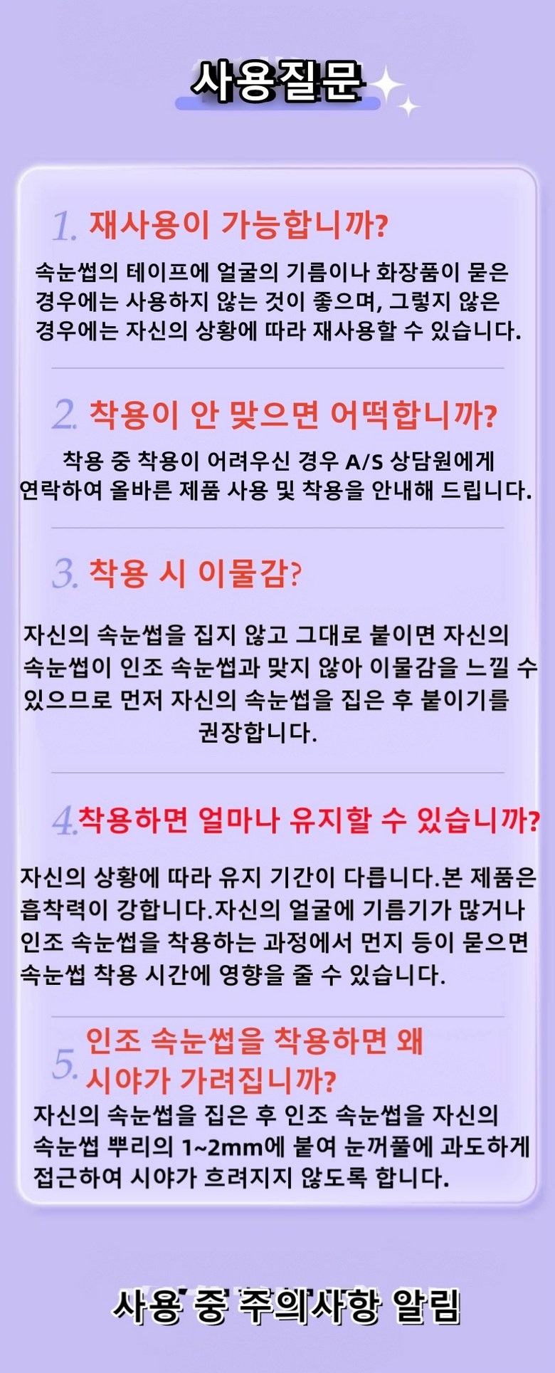 | 품명 및 모델명 | 풀이 필요 없는 인조 속눈썹/인조 속눈썹001 | 인증/허가 사항 | KC 생활용품 공급자적합성 |