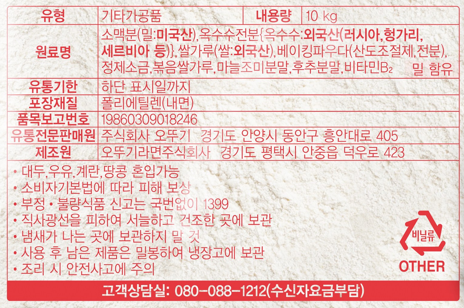 | 제품명 | 오뚜기 튀김가루 | 식품의 유형 | 기타가공품 |