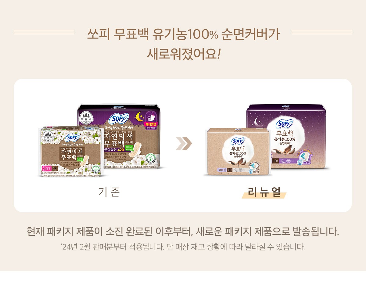 | 품명 및 모델명 | 리뉴얼전:쏘피순면커버내추럴컬러슈퍼롱/리뉴얼후:쏘피순면커버내추럴컬러슈퍼롱에이 | 인증/허가 사항 | 의약외품 |