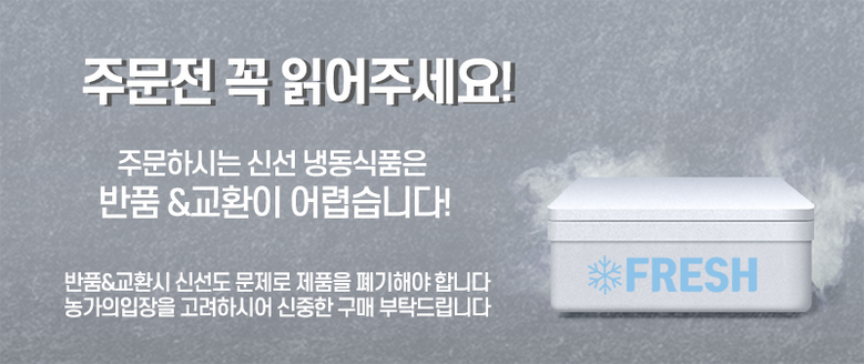 | 배송방법 | 신선/냉장/냉동 | 배송비 | 무료배송 - 도서산간 지역 배송불가 |