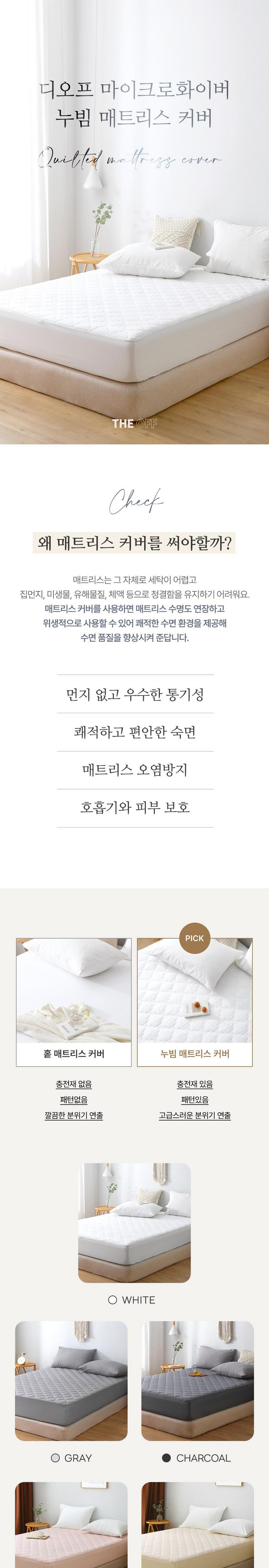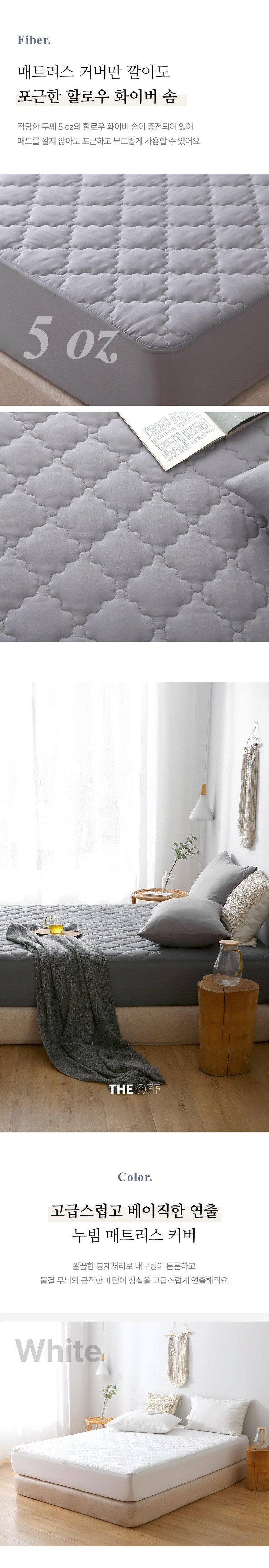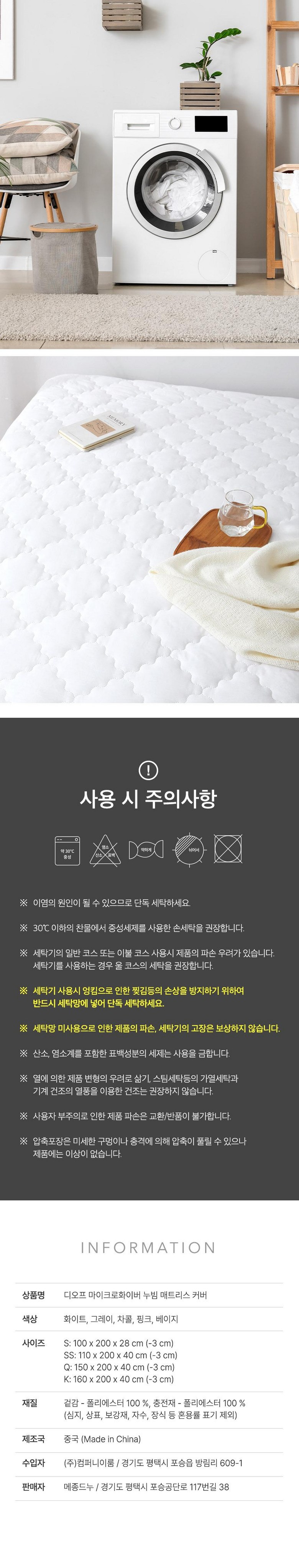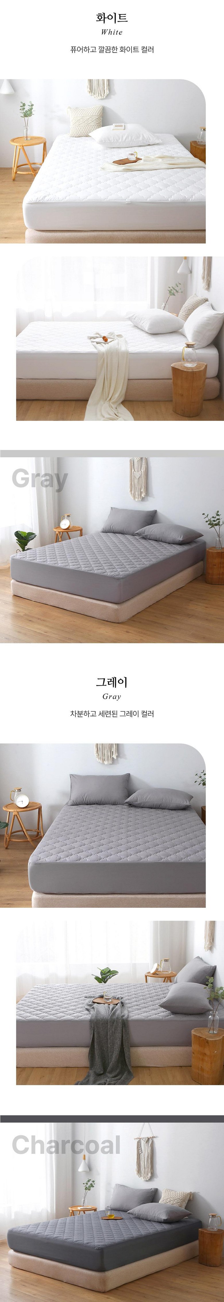 | 치수 | S: 100 x 200 x 28 cm , SS: 110 x 200 x 40 cm, Q: 150 x 200 x 40cm | 제품구성 | 누빔매트리스커버 1장 |