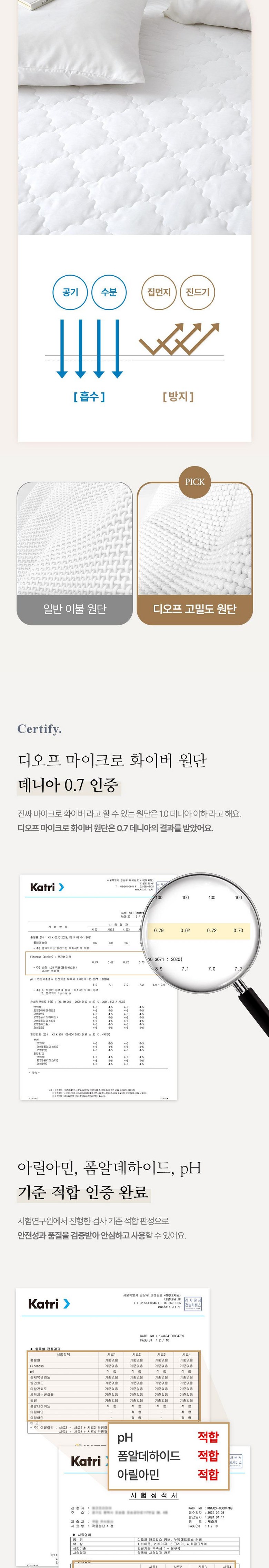 | 제품 소재 | 겉감: 폴리에스터 100%(마이크로화이버), 충전재: 폴리에스터 100% | 색상 | 화이트, 그레이, 차콜그레이 |