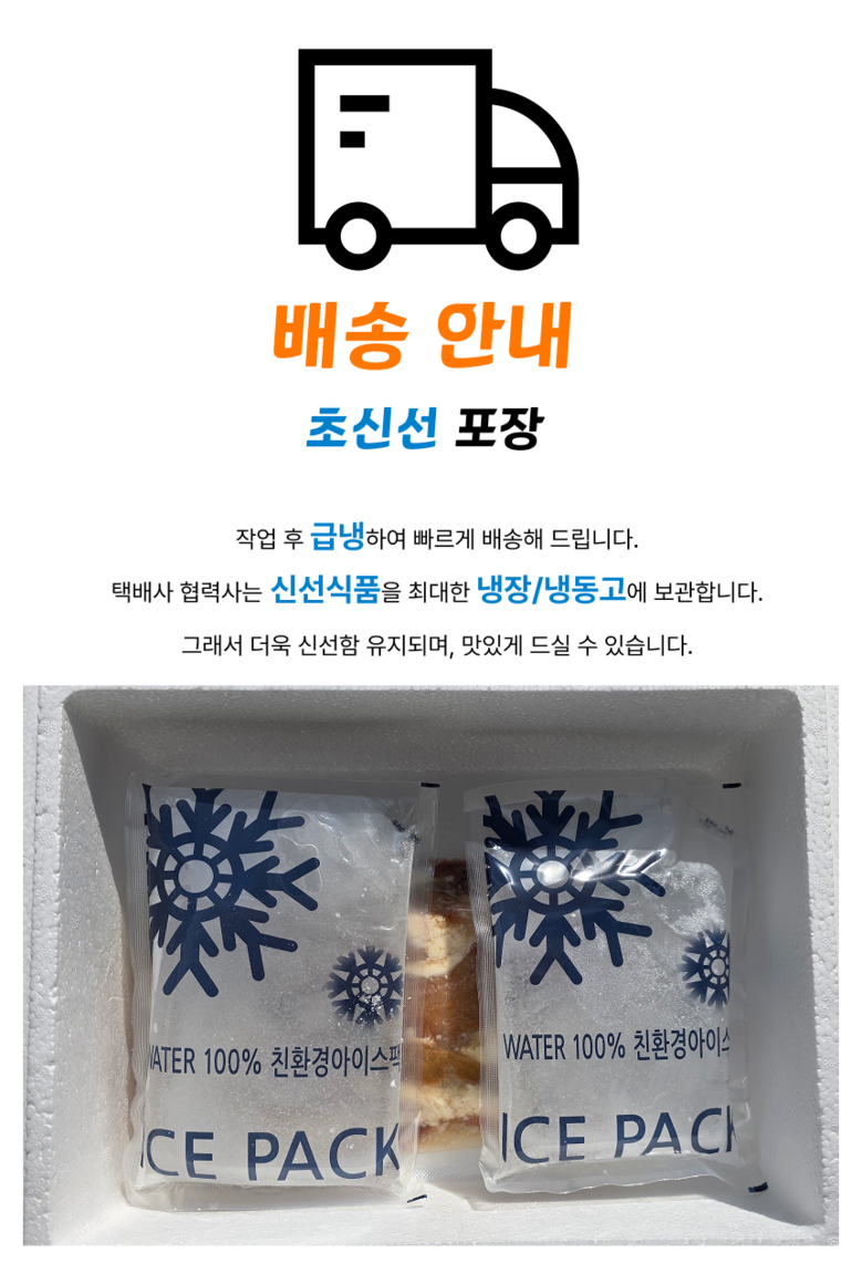 | 배송방법 | 신선/냉장/냉동 | 배송비 | 3,500원 - 30,000원 이상 구매 시 무료배송 - 도서산간 지역 배송불가 |