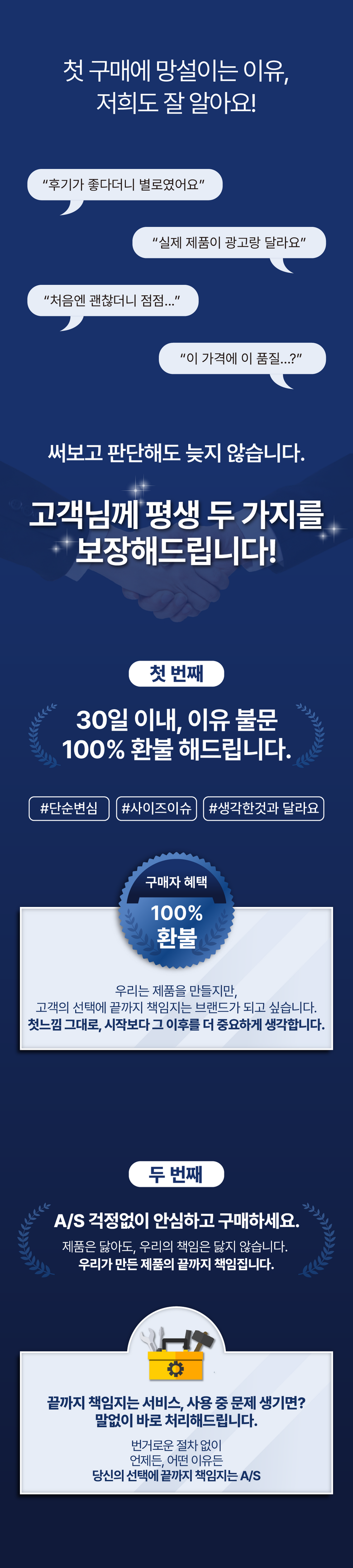 - ㆍ모니터 해상도의 차이로 인해 색상이나 이미지가 실제와 달라, 고객이 단순 변심으로 교환/반품을 무료로 요청하는 경우