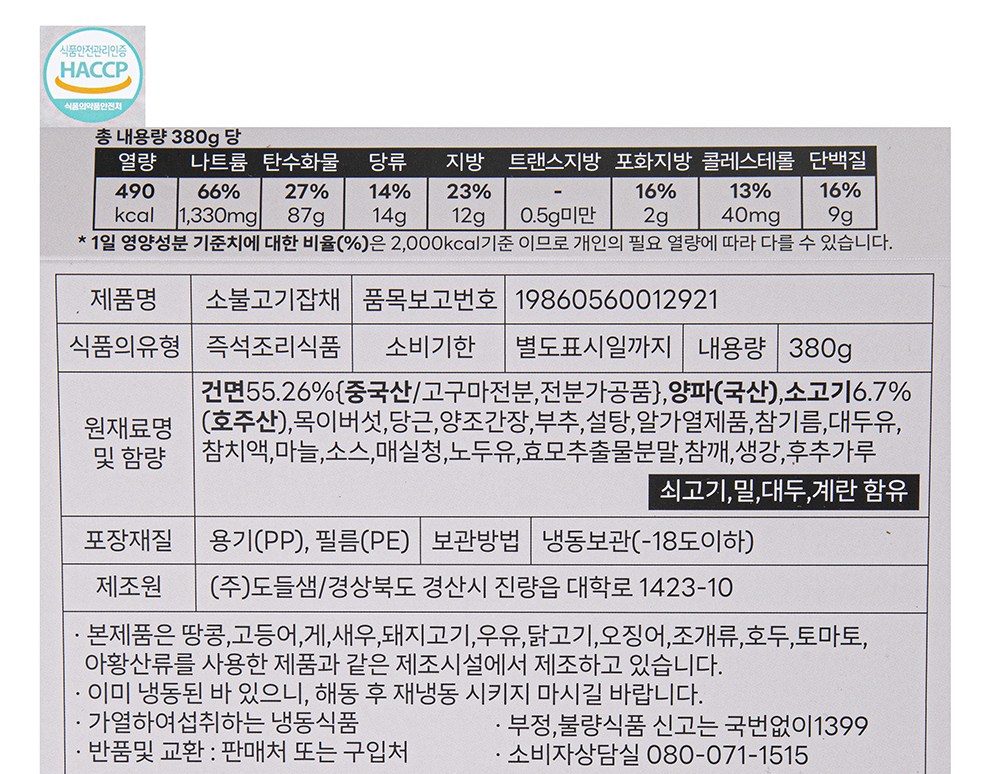 - 섭취방법: 즉석완조리식품