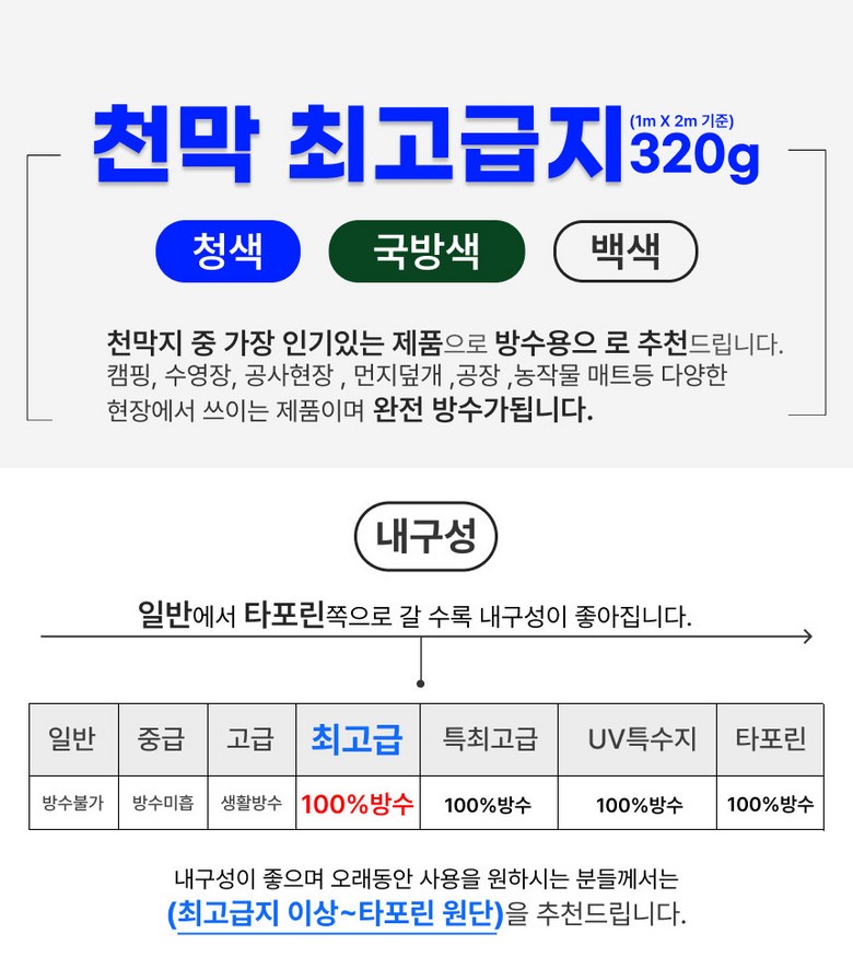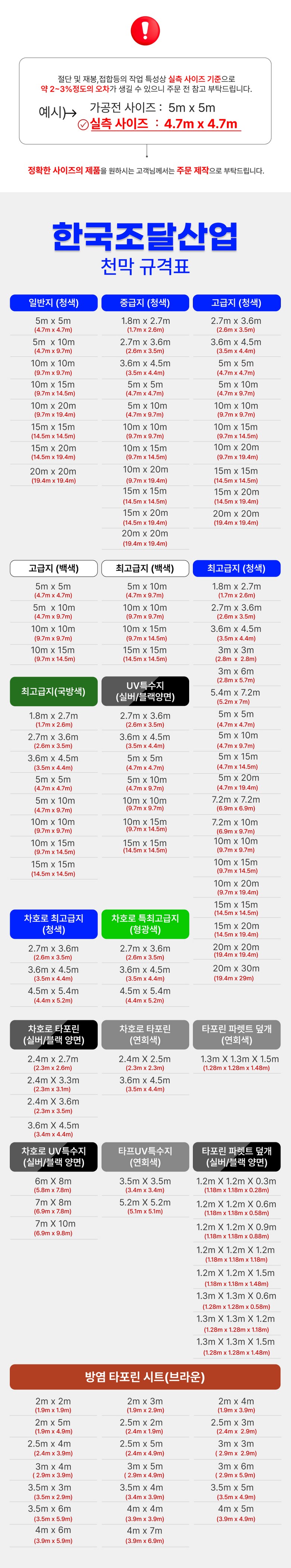 한국조달산업 방수 천막 대형 원단 320g 최고급지 그라운드시트