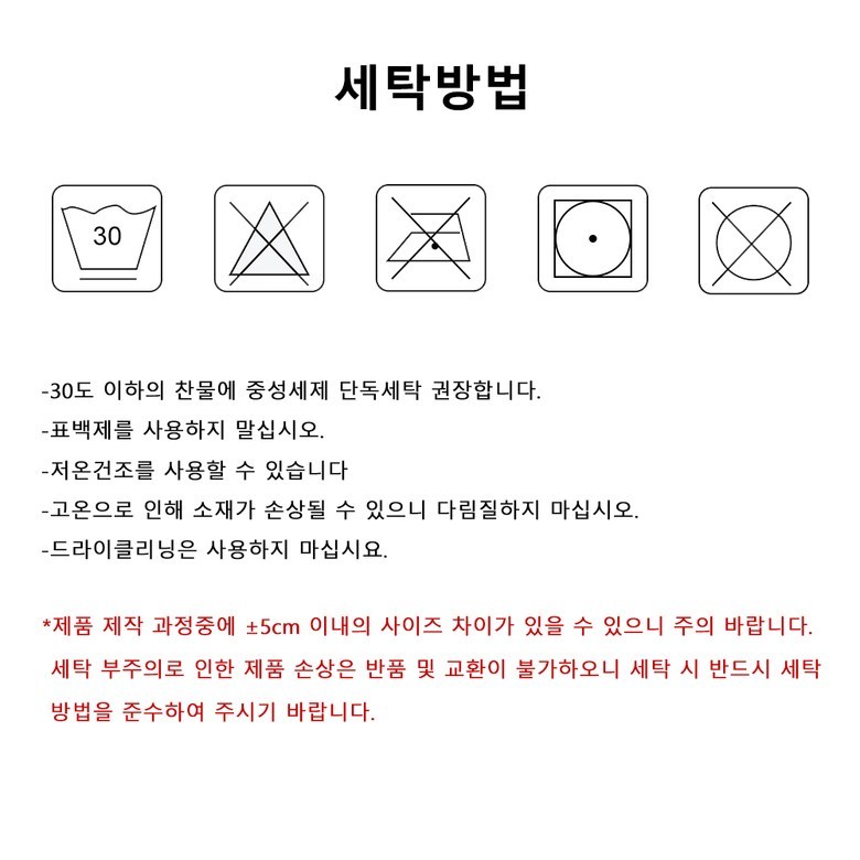 - ㆍ모니터 해상도의 차이로 인해 색상이나 이미지가 실제와 달라, 고객이 단순 변심으로 교환/반품을 무료로 요청하는 경우