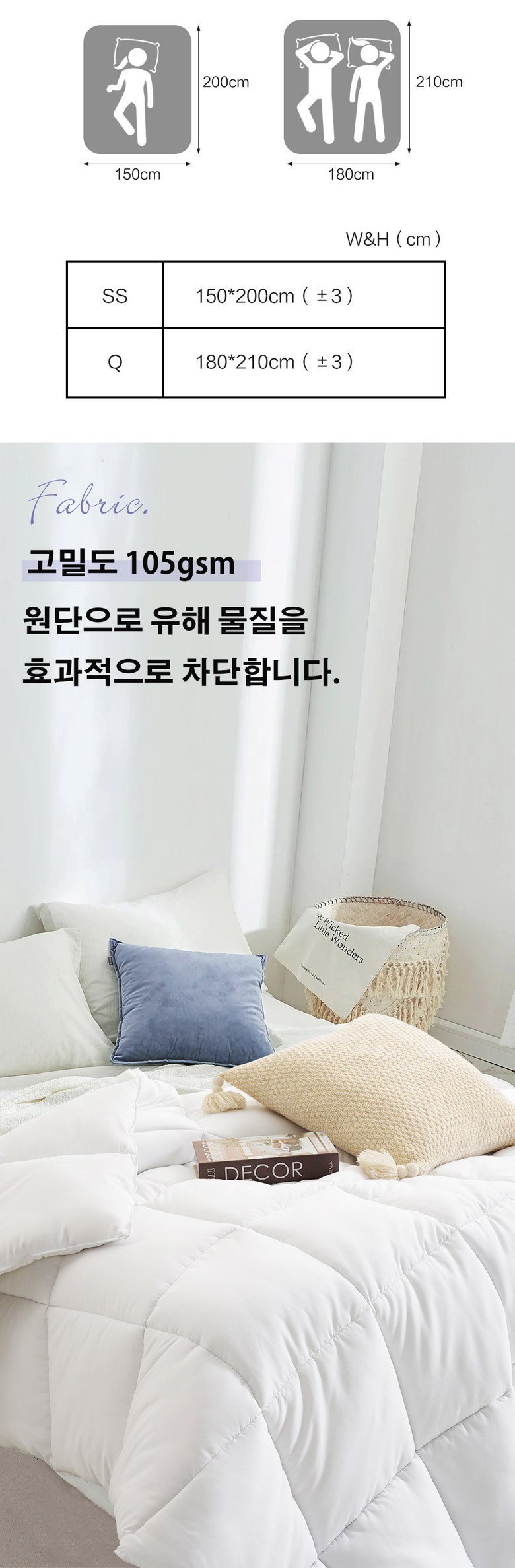 | 치수 | 슈퍼싱글 : 150x200cm 퀸:180×210cm | 제품구성 | 이불 단품 |