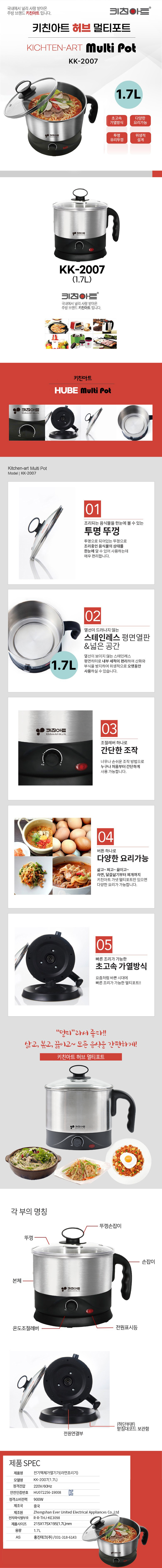 | 품명 및 모델명 | 키친아트 스테인리스 멀티 포트 1.7L / KK-2007 | KC 인증정보 | HU072256-19008H, R-R-THJ-KE3098 |